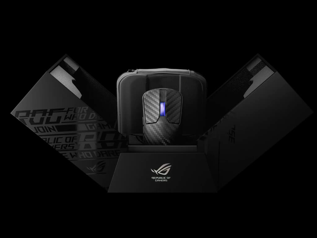 Miške za računalnikeRačunalniška opremaBrezžična gaming miška z ohišjem iz karbonskih vlaken in 47 grami teže. Opremljena je z optičnim senzorjem s 42.000 DPI, ROG 100M optičnimi mikro stikali, ki poskrbijo za odličen odziv z dolgo življenjsko dobo. Omogoča povezovanje z USB kablom, Bluetooth-om ali z USB 2,4GHz ROG SpeedNova sprejemnikom. Gorilla Glass nogice pa poskrbijo za najbolj gladko drsenje.