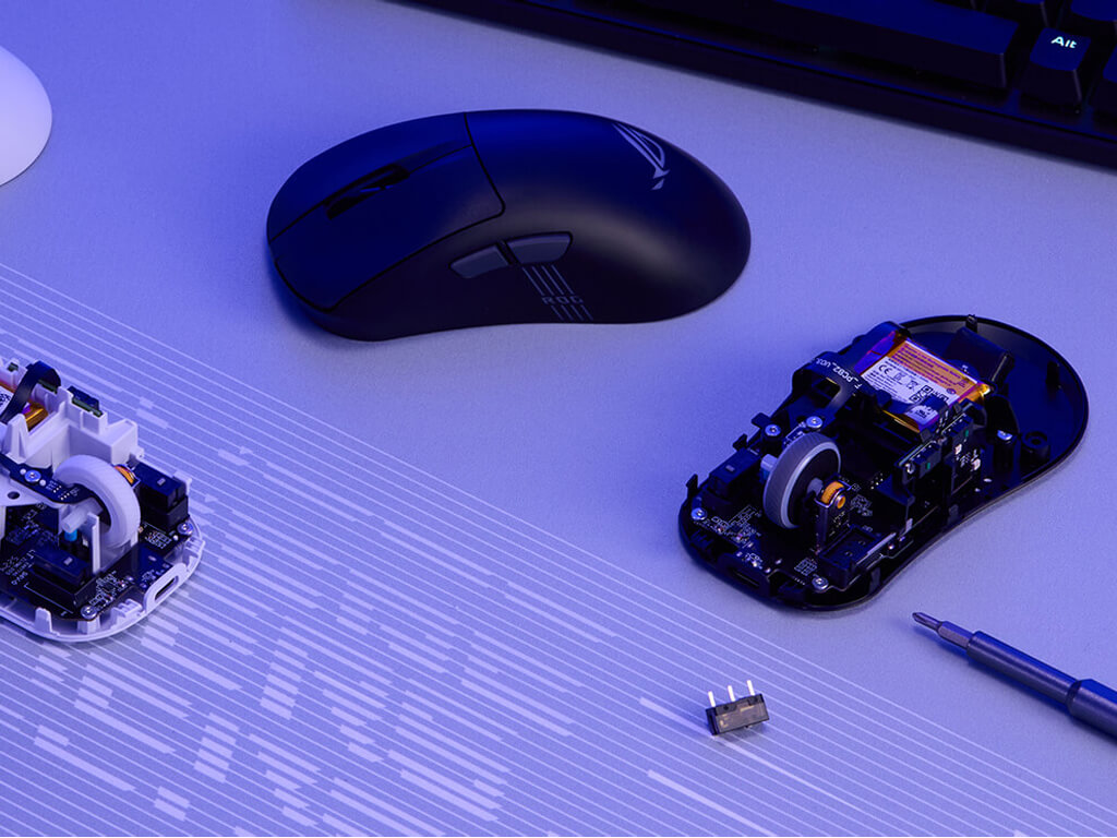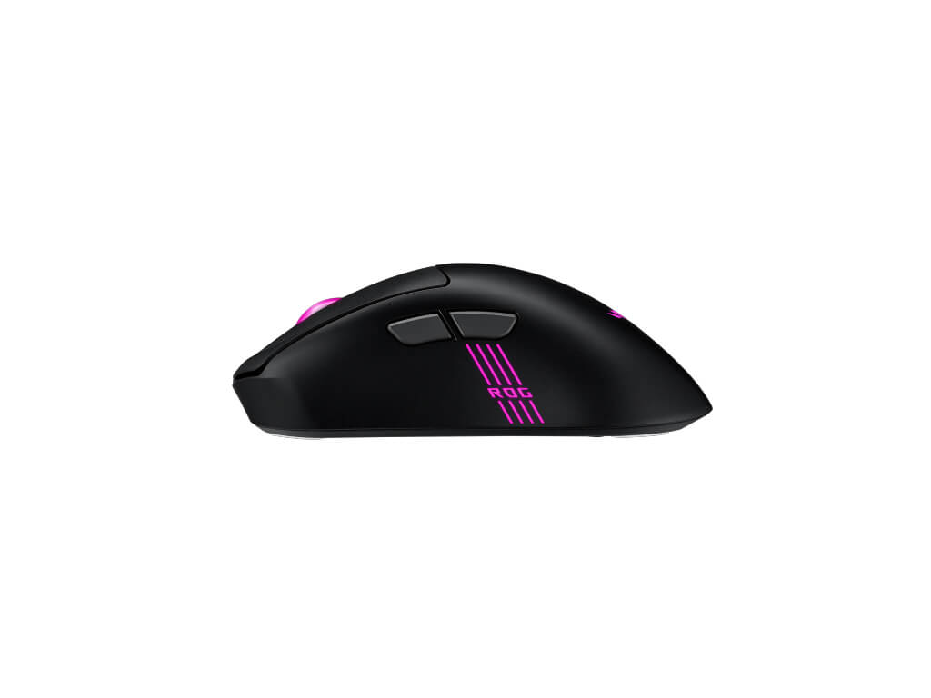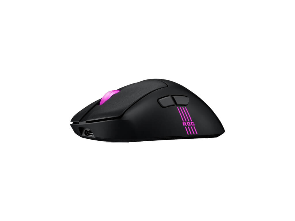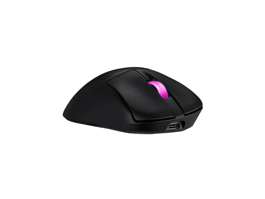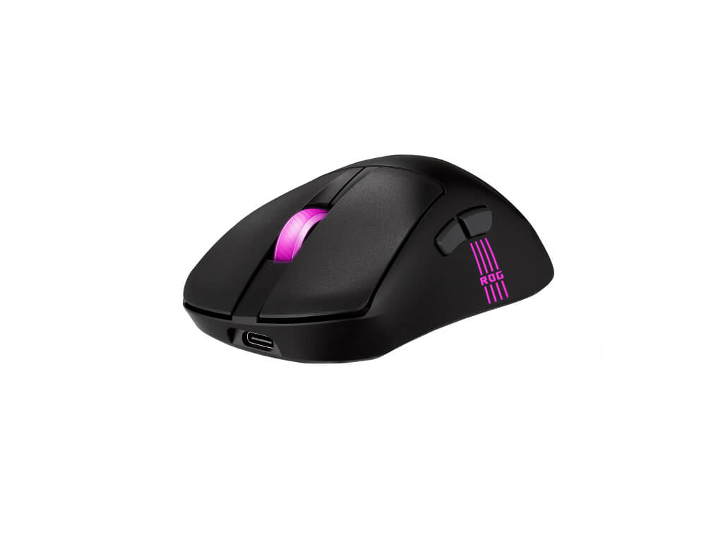Miške za računalnikeRačunalniška opremaBrezžična gaming miška s 3 consko RGB osvetlitvijo in nizko težo 65 g. Omogoča brezžično povezavo z USB sprejemnikom in z Bluetoothom ter žično s kablom. Vgrajena Li-ion baterija se polni z USB-C kablom. ROG AimPoint Pro optični senzor s 42.000 DPI za natančnost, Push-Fit Socket II zasnova pa omogoča enostavno menjavo stikal.