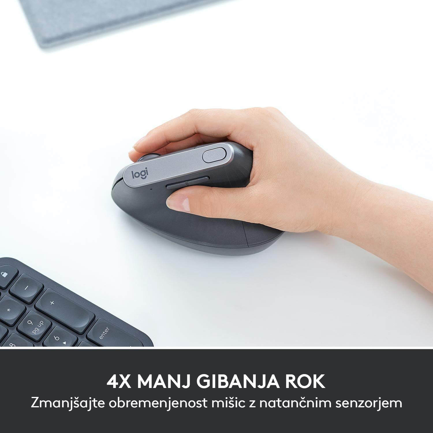 MX Vertical je napredna ergonomska miška, ki združuje izpiljeno obliko in zmogljivost Logitechove MX serije. Zaradi vertikalne zasnove zmanjšuje obremenitev roke ter jo postavi v bolj naraven položaj, kar je idealno za tiste, ki pred računalnikom preživijo veliko časa. Udobje dopolnjujejo še natančen optični senzor, teksturirana površina in kakovosten kolešček. Miško lahko povežemo na kar tri načine, med drugim ima tudi USB-C priključek za hitro polnjenje ter Easy-Switch za enostavno preklapljanje med tremi napravami. Ponaša se še s Flow funkcionalnostjo, ki omogoča uporabo miške hkrati na več napravah.