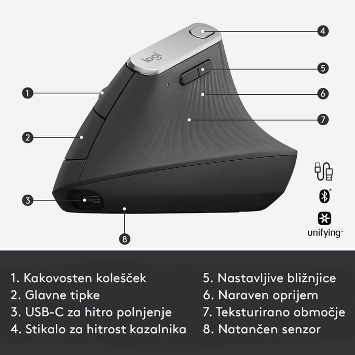 | SPECIFIKACIJE Miška Logitech MX Vertical | |