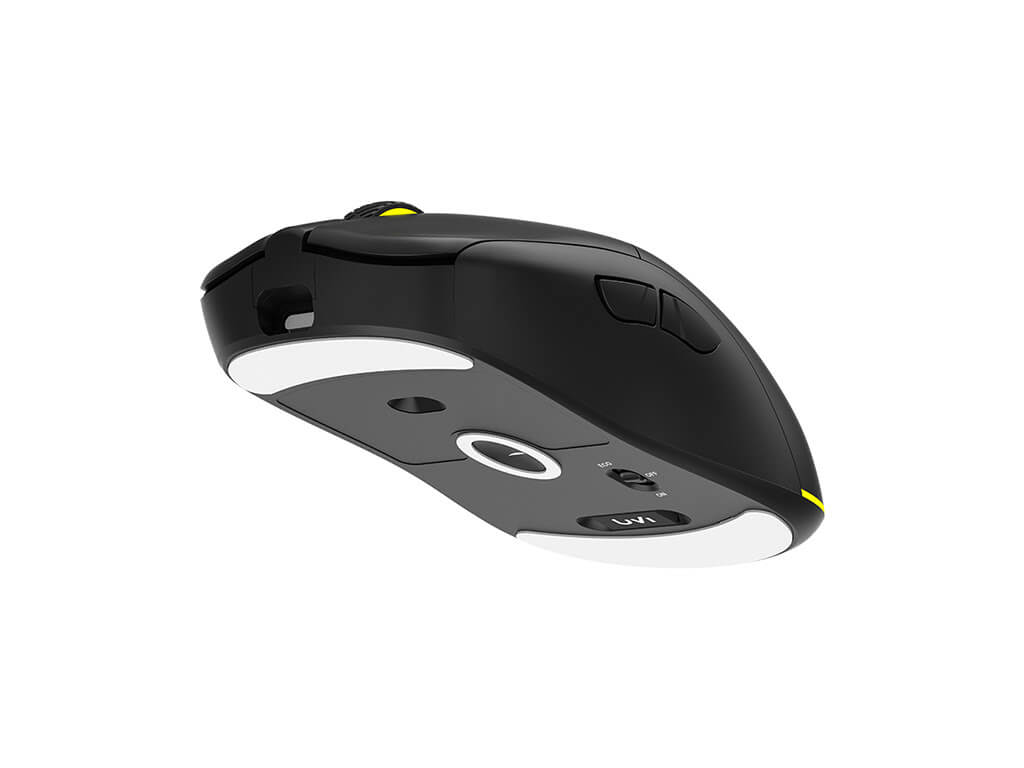 Brezžične miškeGaming MiškeMiške za računalnikeRačunalniška opremaBrezžična miška z RGB osvetlitvijo. Primerna za levičarje in desničarje. Brezžična povezava z USB sprejemnikom. Opremljena je s Pixart 3370 optičnim senzorjem s prilagodljivo občutljivostjo 100-19.000 DPI. Baterija ima kapaciteto 730 mAh, ki omogoča do 70 ur uporabe in polnjenje z USB-C kablom.