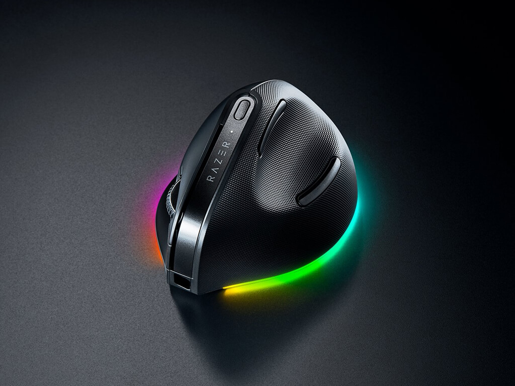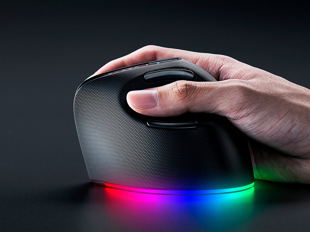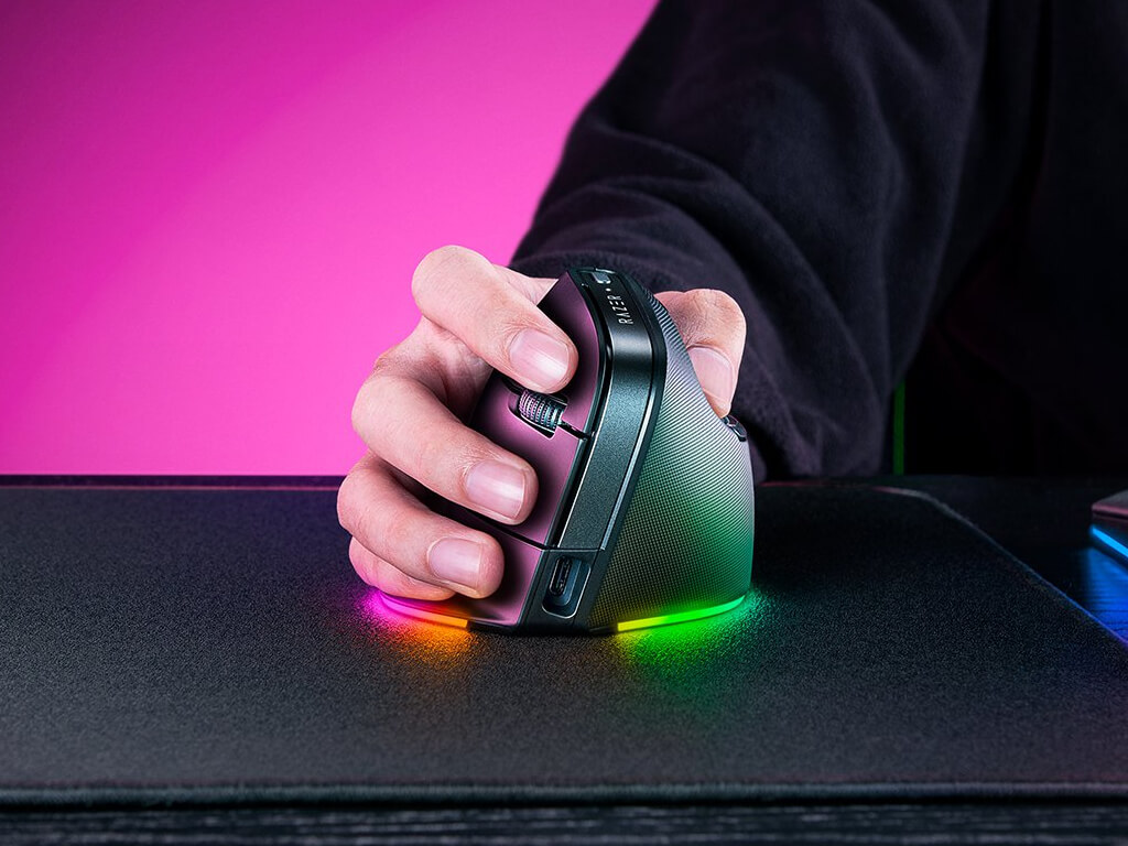 Vertikalna miška s Focus Pro gaming senzorjem s 30.000 DPI občutljivosti. Oblikovana za bolj naravno držo dlani in primerna tako za pisarniško kot gaming uporabo. Ima 6 programabilnih gumbov, polnilno baterijo in 18 consko RGB osvetlitev. Baterija omogoča do 6 mesecev uporabe in polnjenje z USB-C kablom. Poveže se s kablom, USB sprejemnikom ali Bluetooth-om. Primerna za desničarje.