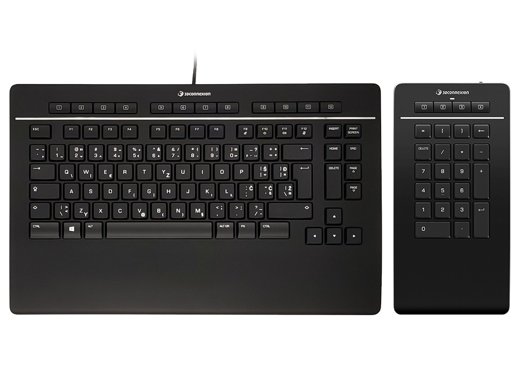 Tipkovnica 3Dconnexion Keyboard Pro z ločeno numerično tipkovnico Numpad Pro je namenjena delu s 3D modeli in profesionalnem oblikovanju. Zahvaljujoč manjši širini daje več prostora vaši miški in s tem bolj naravno in udobno držo pri delu. 12 programabilnih 3Dconnexion tipk samodejno zagotavlja hiter dostop do najbolj uporabljenih funkcij v posameznih aplikacijah.