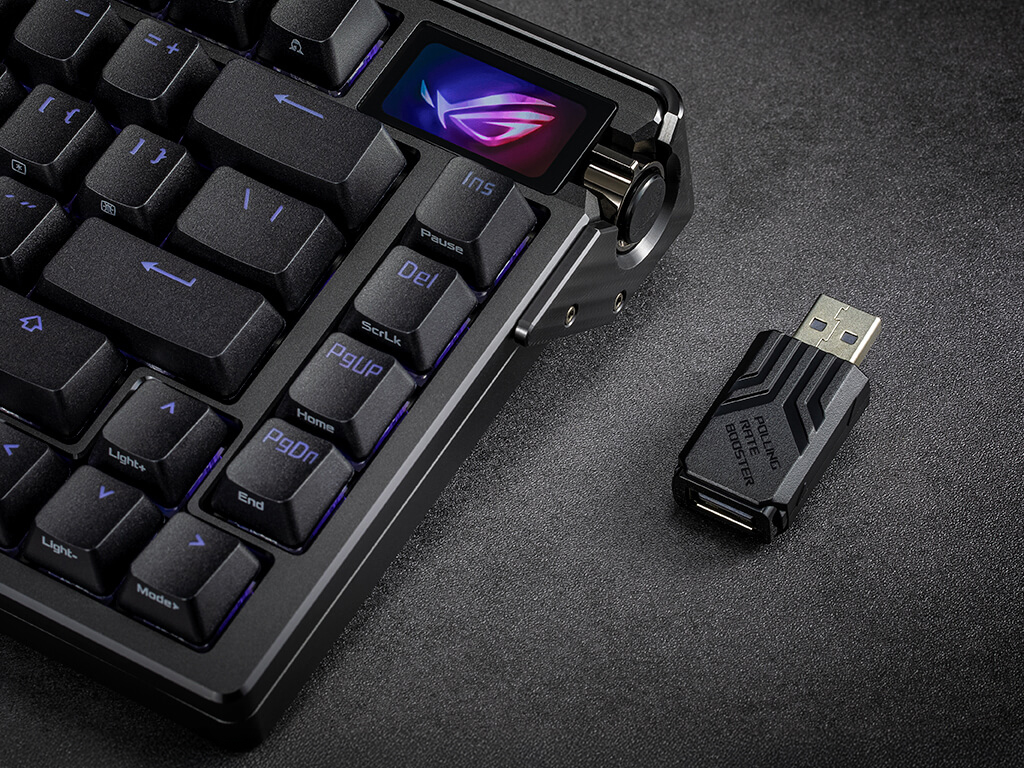 Brezžična mehanska gaming tipkovnica z ROG NX Snow stikali, vzdržljivimi individualno osvetljenimi PBT tipkami z AuraSync RGB. Zgornja plošča je iz aluminija, v notranjosti ima različne akustične in stabilizacijske plasti, ki prinašajo odličen zvok in občutek pri tipkanju. Opremljena je tudi z OLED zaslonom na dotik, ki omogoča prikaz različnih informacij, animacij in multimedijskih vsebin ter nastavljive nogice za ergonomsko postavitev. Omogoča povezavo z USB kablom, ter brezžično z USB sprejemnikom ali Bluetooth.