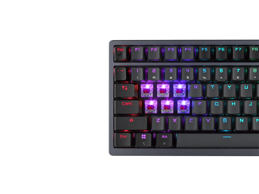 Brezžična mehanska gaming tipkovnica z ROG NX rdečimi stikali, vzdržljivimi individualno osvetljenimi PBT tipkami z AuraSync RGB. Zgornja plošča je iz aluminija, v notranjosti ima različne akustične in stabilizacijske plasti, ki prinašajo odličen zvok in občutek pri tipkanju. Opremljena je tudi z OLED zaslonom, ki omogoča prikaz različnih informacij, animacij in multimedijskih vsebin ter nastavljive nogice za ergonomsko postavitev. Omogoča povezavo z USB kablom, ter brezžično z USB sprejemnikom ali Bluetooth.