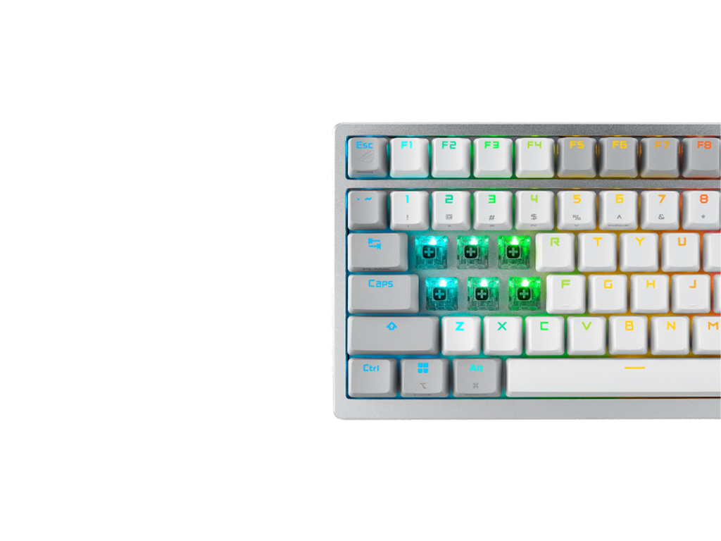 Brezžična mehanska gaming tipkovnica z ROG NX Snow stikali, vzdržljivimi individualno osvetljenimi PBT tipkami z AuraSync RGB. Zgornja plošča je iz aluminija, v notranjosti ima različne akustične in stabilizacijske plasti, ki prinašajo odličen zvok in občutek pri tipkanju. Opremljena je tudi z OLED zaslonom, ki omogoča prikaz različnih informacij, animacij in multimedijskih vsebin ter nastavljive nogice za ergonomsko postavitev. Omogoča povezavo z USB kablom, ter brezžično z USB sprejemnikom ali Bluetooth.
