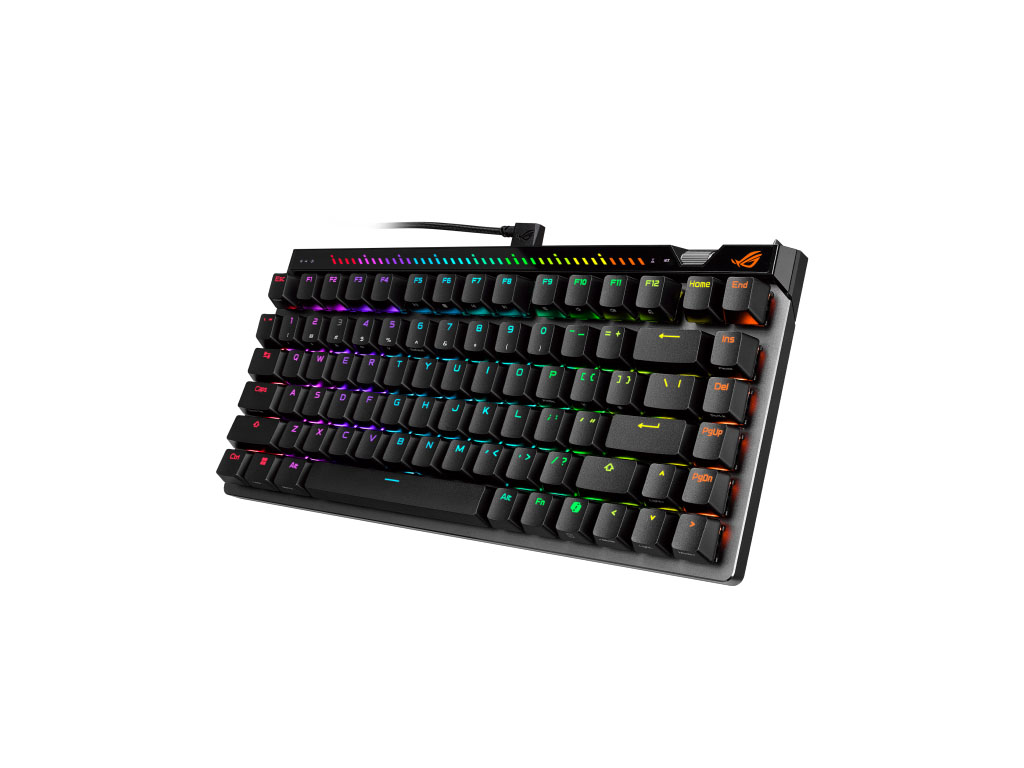 Mehanska gaming tipkovnica s prednaoljenimi ROG HFX V2 magnetnimi stikali in ROG Hall senzorjem. Stikala omogočajo hitro proženje (rapid trigger in speed tap). Tipkovnica je v 75% velikosti, omogoča 8000 Hz frekvenco poročanja ter je sestavljena iz 6 plasti za izničevanje šuma med tipkanjem. Intuitivni nadzor nad točko proženja, glasnostjo ali osvetlitvijo z večfunkcijskim gumbom in interaktivno ploščo na dotik. Omogoča priklop z USB-C kablom. Integrirane noge za nastavitev naklona, dvoslojne PBT tipke za vzdržljivost. Priložen kovček za shranjevanje ali prenašanje.