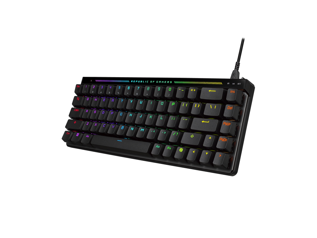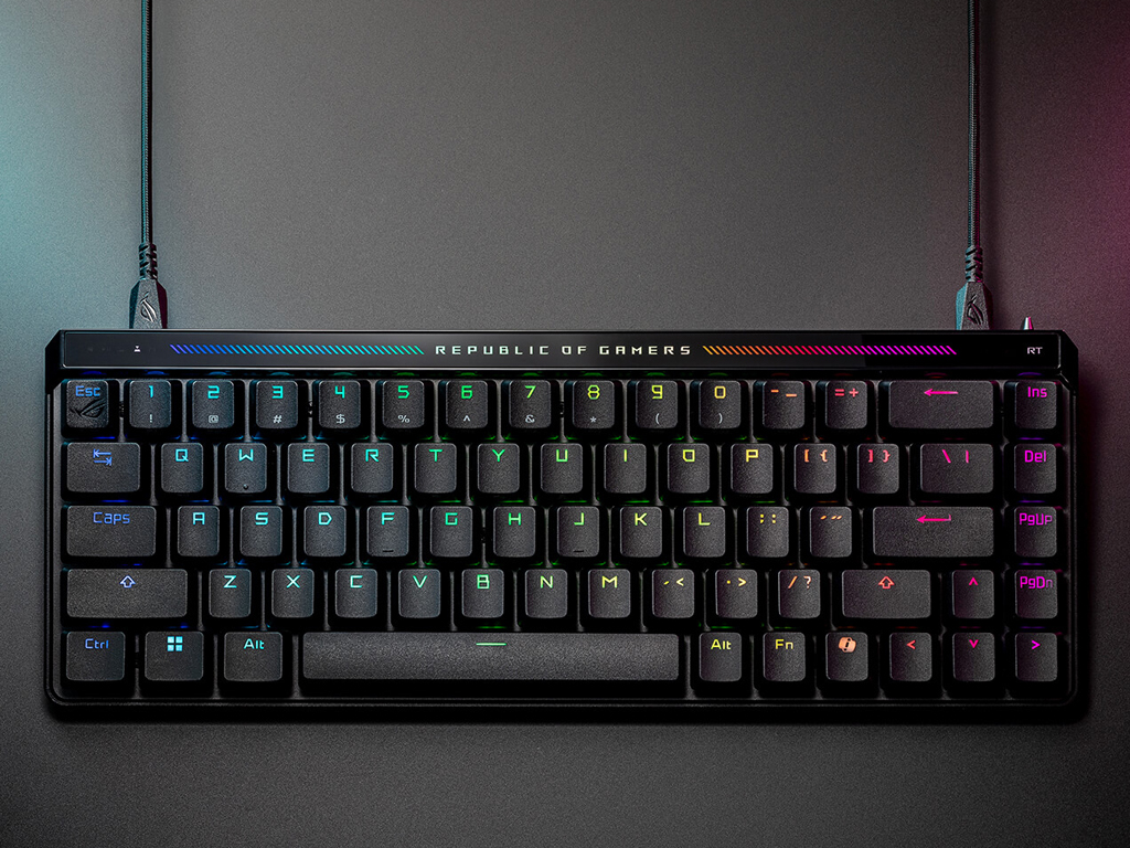 Mehanska gaming tipkovnica s prednaoljenimi ROG HFX magnetnimi stikali. Stikala omogočajo hitro proženje (rapid trigger in speed tap). Tipkovnica je v 65% velikosti, omogoča 8000 Hz frekvenco poročanja ter je sestavljena iz 5 plasti za izničevanje šuma med tipkanjem. Intuitivni nadzor nad točko proženja, glasnostjo ali osvetlitvijo z večfunkcijskim gumbom in interaktivno ploščo na dotik. Omogoča priklop z dvema USB-C vhodoma. Integrirane noge za nastavitev naklona. Priložen pokrov.