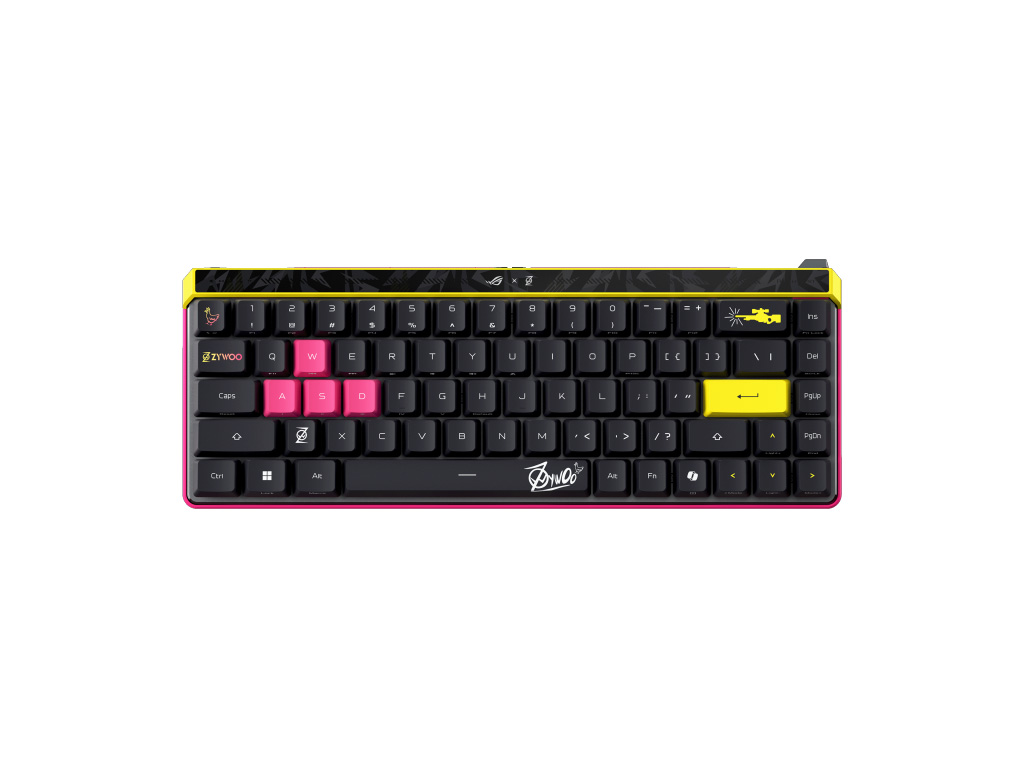 Zyw0o verzija mehanske gaming tipkovnice s prednaoljenimi ROG HFX magnetnimi stikali. Stikala omogočajo hitro proženje (rapid trigger in speed tap). Tipkovnica je v 65% velikosti, omogoča 8000 Hz frekvenco poročanja ter je sestavljena iz 5 plasti za izničevanje šuma med tipkanjem. Intuitivni nadzor nad točko proženja, glasnostjo ali osvetlitvijo z večfunkcijskim gumbom in interaktivno ploščo na dotik. Omogoča priklop z dvema USB-C vhodoma. Integrirane noge za nastavitev naklona. Priložen pokrov.