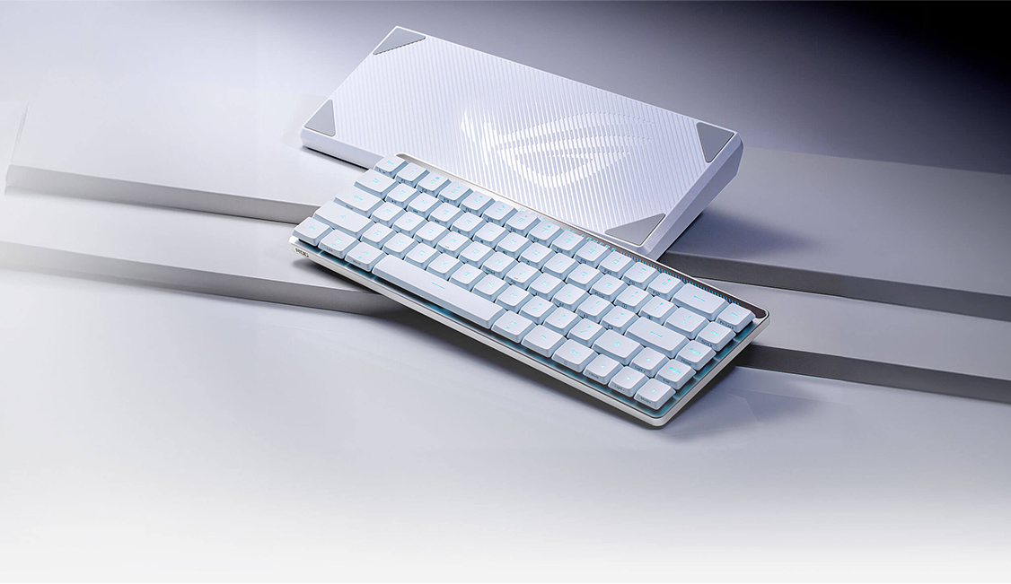 Kompaktna tipkovnica 65% z nizkprofilnimi mehanskimi rdečimi stikali ROG RX. Osvetljene RGB LED ABS tipke. Tipkovnica je visoka 26,5 mm, omogoča povezavo z USB kablom, brezžično z 2,4GHz ROG Omni USB sprejemnikom ali z Bluetooth-om. Ima interaktivni predel občutljiv na dotik za upravljanje multimedije ali glasnosti. Dva para nogic za spreminjanje naklona tipkovnice. Polnilna baterija omogoča do 430 ur delovanja in polnjneje s snemljivim USB-C kablom.