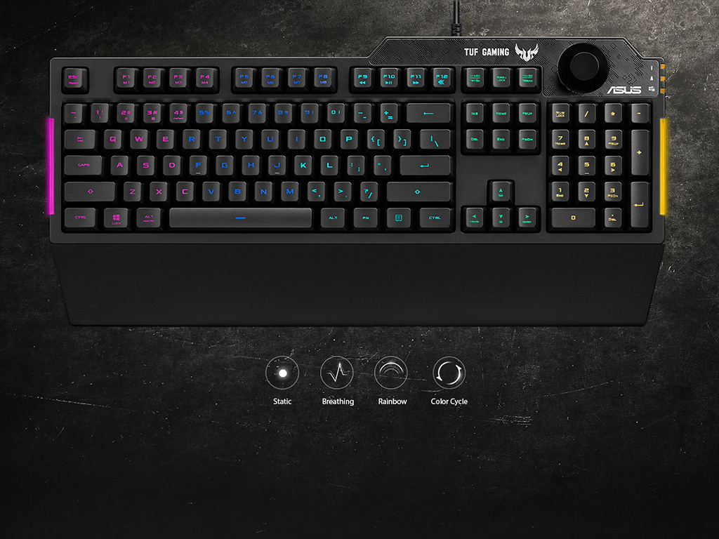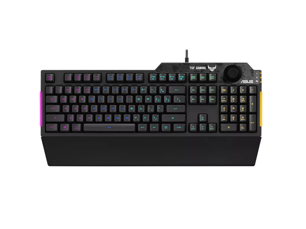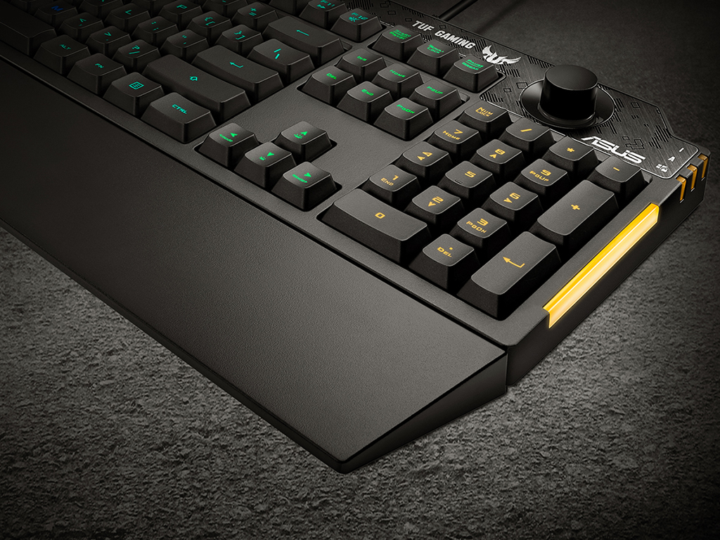 ASUS TUF Gaming K1 je igralna tipkovnica, ki prinaša odlično zmogljivost in izjemno vzdržljivost. Opremljena je s stikali, ki omogočajo tiho tipkanje z dobrim taktilnim odzivom. Nameščena so v okvirju, ki zagotavlja odpornost proti politju in je ojačan s posebno prevleko za odlično robustnost. K1 se ponaša tudi z RGB osvetlitvijo, namenskim gumbom za upravljanje glasnosti in snemljivim ergonomskim naslonom za zapestja.