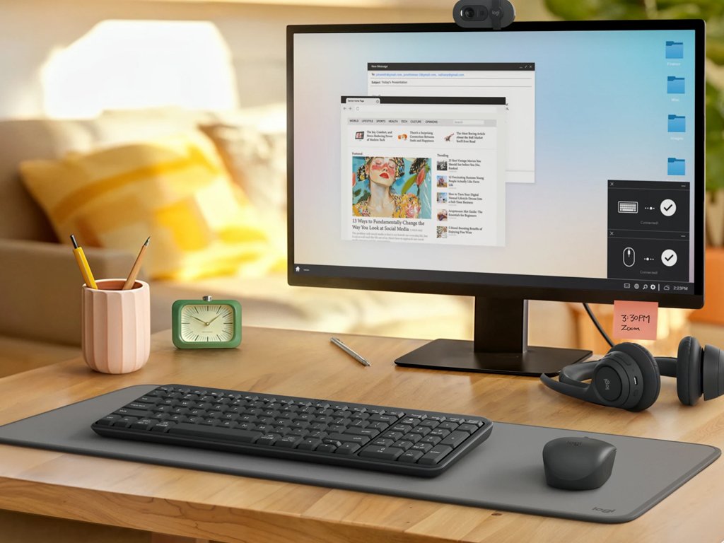 Komplet tipkovnice in miške MK250 vključuje brezžično tipkovnico s številčnico in miško z optičnim senzorjem ločljivosti 1000 DPI. Povezava prek Bluetootha omogoča enostavno in zanesljivo uporabo brez kablov. Tipkovnica ima nastavljive nogice, s katerimi si lahko prilagodite naklon za udobnejše tipkanje. Z enim kompletom baterij delujeta do 12 mesecev.
