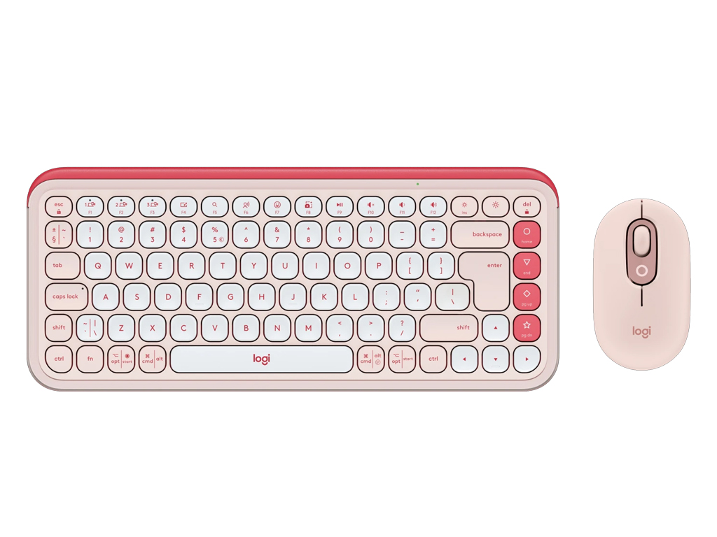 Komplet tipkovnice POP Icon Keys in miške POP Mouse atraktivnih barv s 4 prilagodljivimi akcijskimi gumbi. Omogoča Bluetooth in Logi Bolt povezavo z različnimi napravami. Tipkovnica Ima nizke tipke za udobno in tiho tipkanje, miška pa SilentClick in SmartWheel kolešček. Tipkovnico napajata dve AAA bateriji, ki omogočata do 3 leta delovanja, miško pa ena AA baterija, ki nudi do 2 leti delovanja.