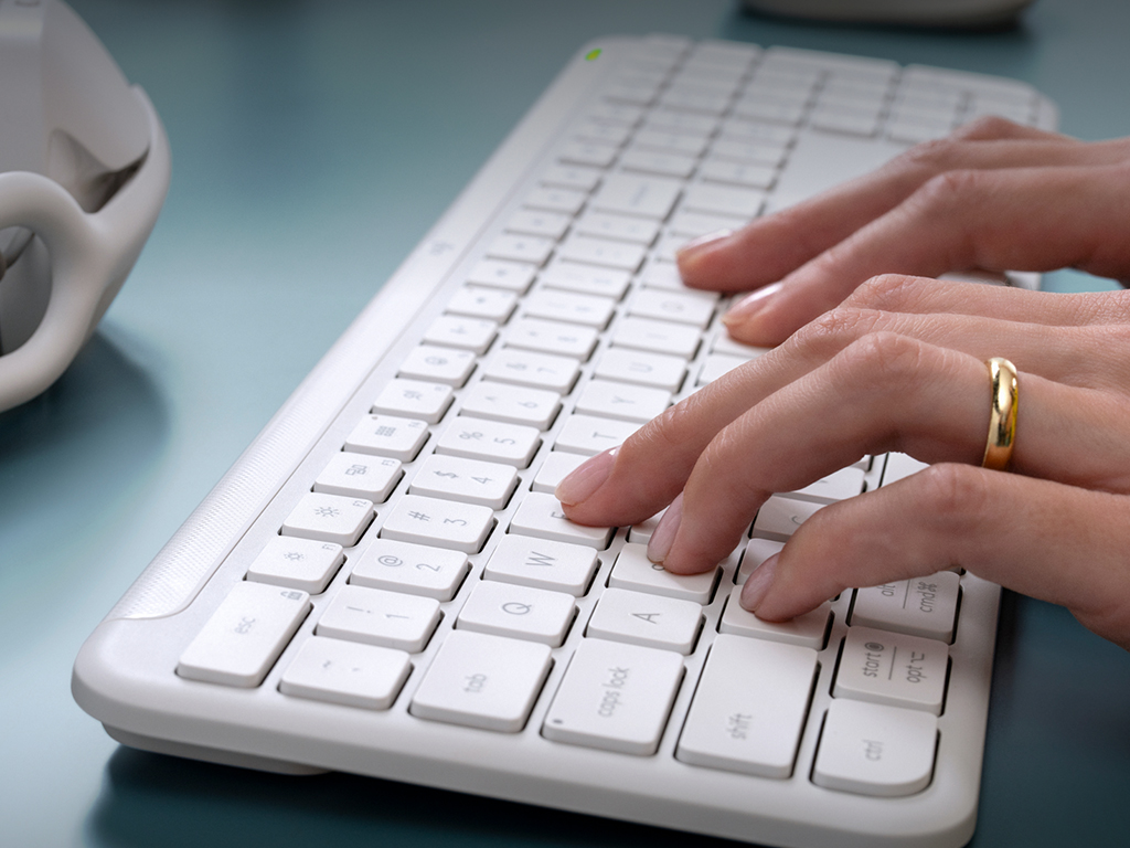 Komplet miške in tipkovnice Signature Slim MK950 omogoča enostavno brezžično povezavo z Logi Bolt sprejemnikom ali Bluetooth-om in enostavno preklaplanje med povezanimi napravami z Easy-Switch gumbi. Miška ima optični senzor s 1000 DPI, tihi klik in kolešček s SmartWheel tehnologijo, tipkovnica pa ima tihe tipke, nastavljive ergonomske nogice ter indikatorske lučke za baterijo, velike črke in povezavo. Priložene 2x AAA in 1x AA baterije za tipkovnico in miško.