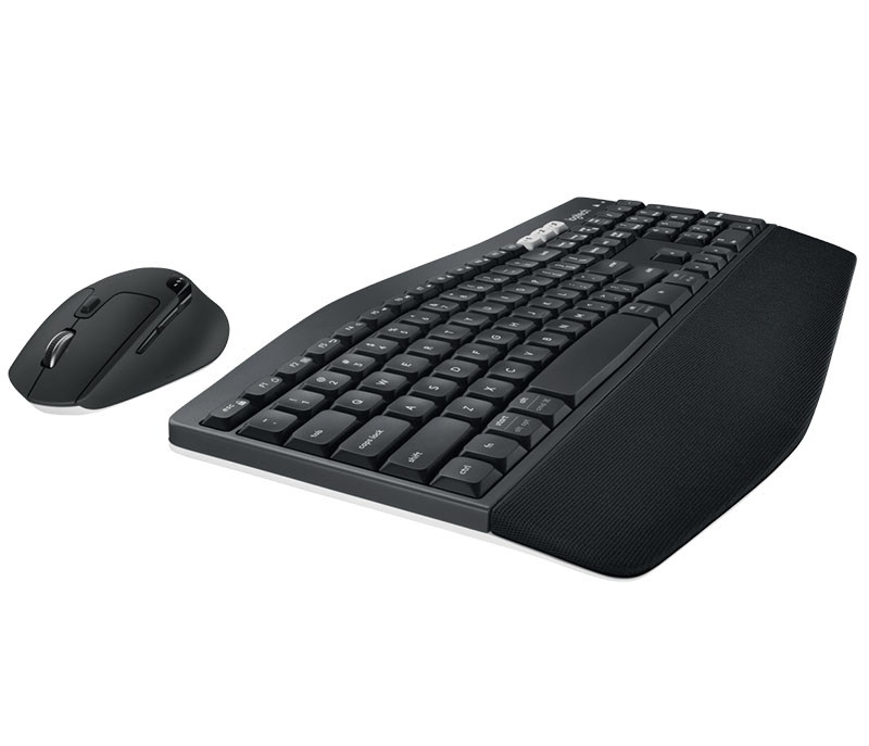 Komplet brezžične miške in tipkovnice. Komplet omogoča priklop preko Logitech Unifying sprejemnika ali Bluetooth povezave in ga lahko uporabljamo v navezi z do tremi napravami med katerimi enostavno preklapljamo s pritiskom na gumb. Komplet odlikuje dolga življenska doba baterij, inovativna zaobljena tipkovnica, udoben naslon za dlani, ter udobna in ergonomska miška s Hyper scroll koleščkom.