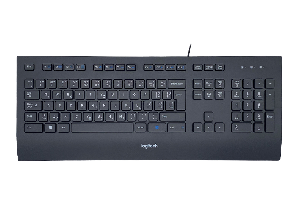 Udobna in vzdržljiva tipkovnica s tihimi, nizkoprofilnimi tipkami. Odporna na manjše količine polite tekočine. USB priklop.
