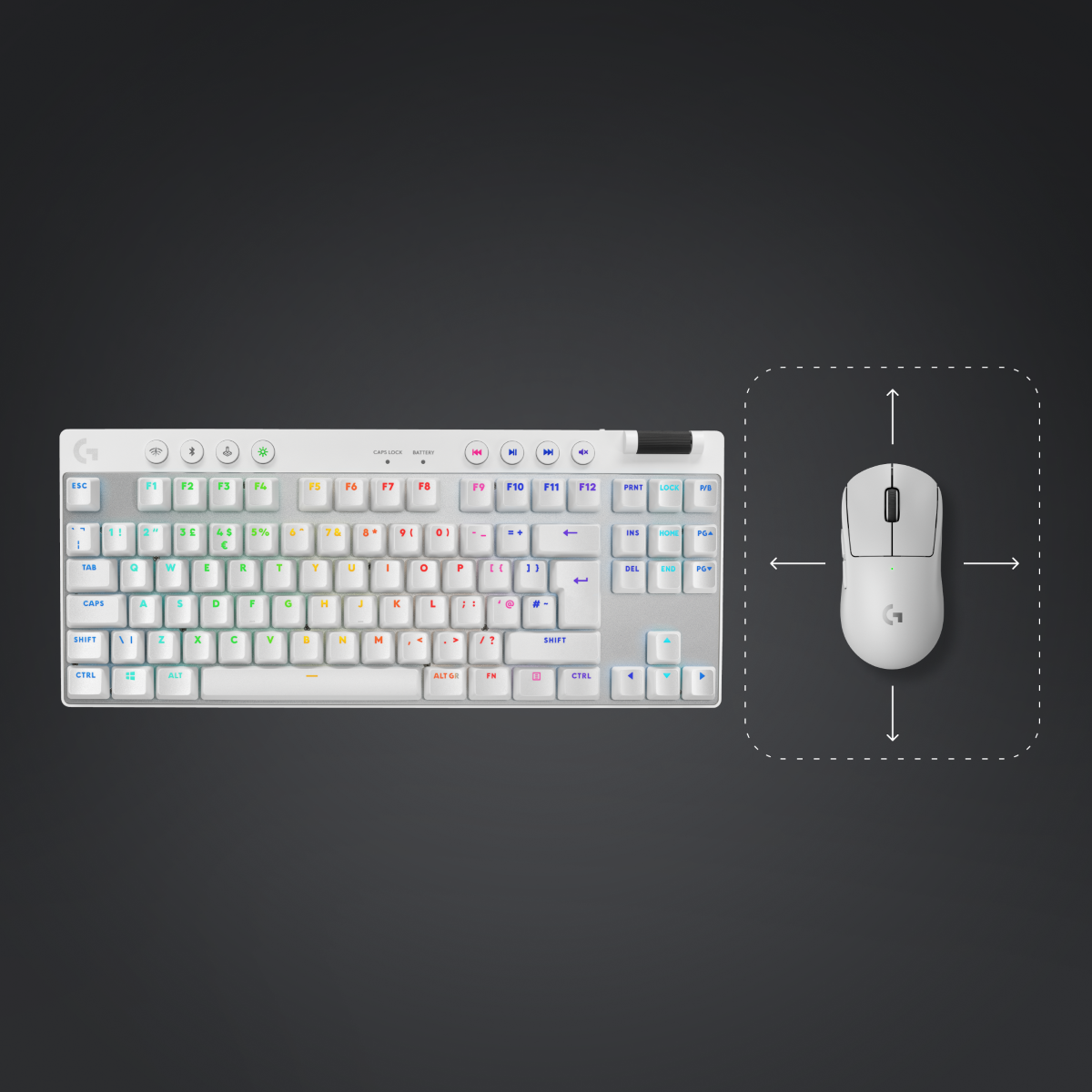 Mehanska igralna tipkovnica v TKL formatu z Logitech GX Brown taktilnimi stikali. Tipkovnica je opremljena z LIGHTSPEED brezžično povezavo, omogoča pa tudi povezavo z Bluetooth ali s priloženim USB-C v USB-A kablom. Ima PBT individualno osvetljene tipke, posebne tipke za upravljanje multimedije, in 1 ms frekvenco poročanja. Priložen kovček za shranjevanje ali prenašanje tipkovnice.