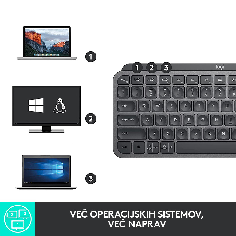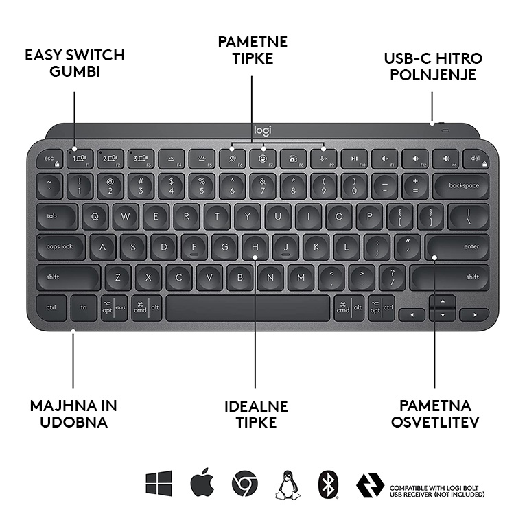 | SPECIFIKACIJE Logitech MX Keys Mini, grafitna barva, SLO g. | |