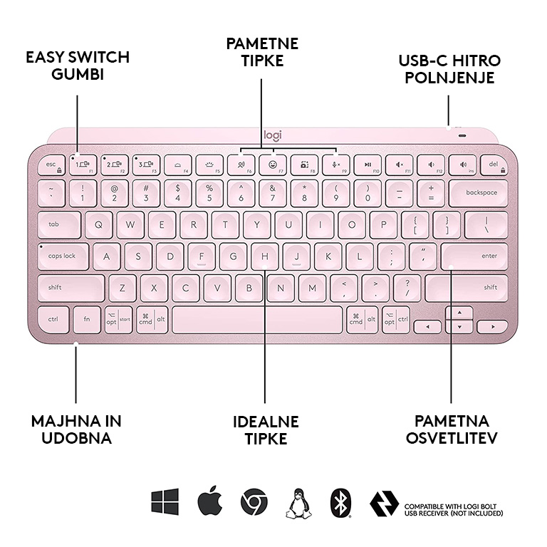 | SPECIFIKACIJE Logitech MX Keys Mini, roza, SLO g. | |