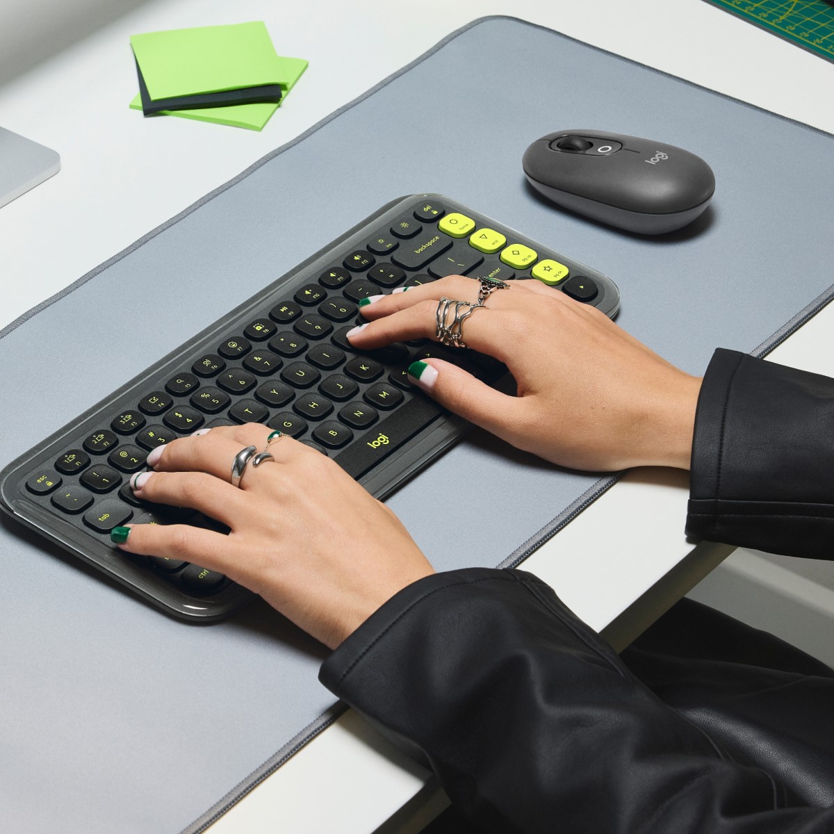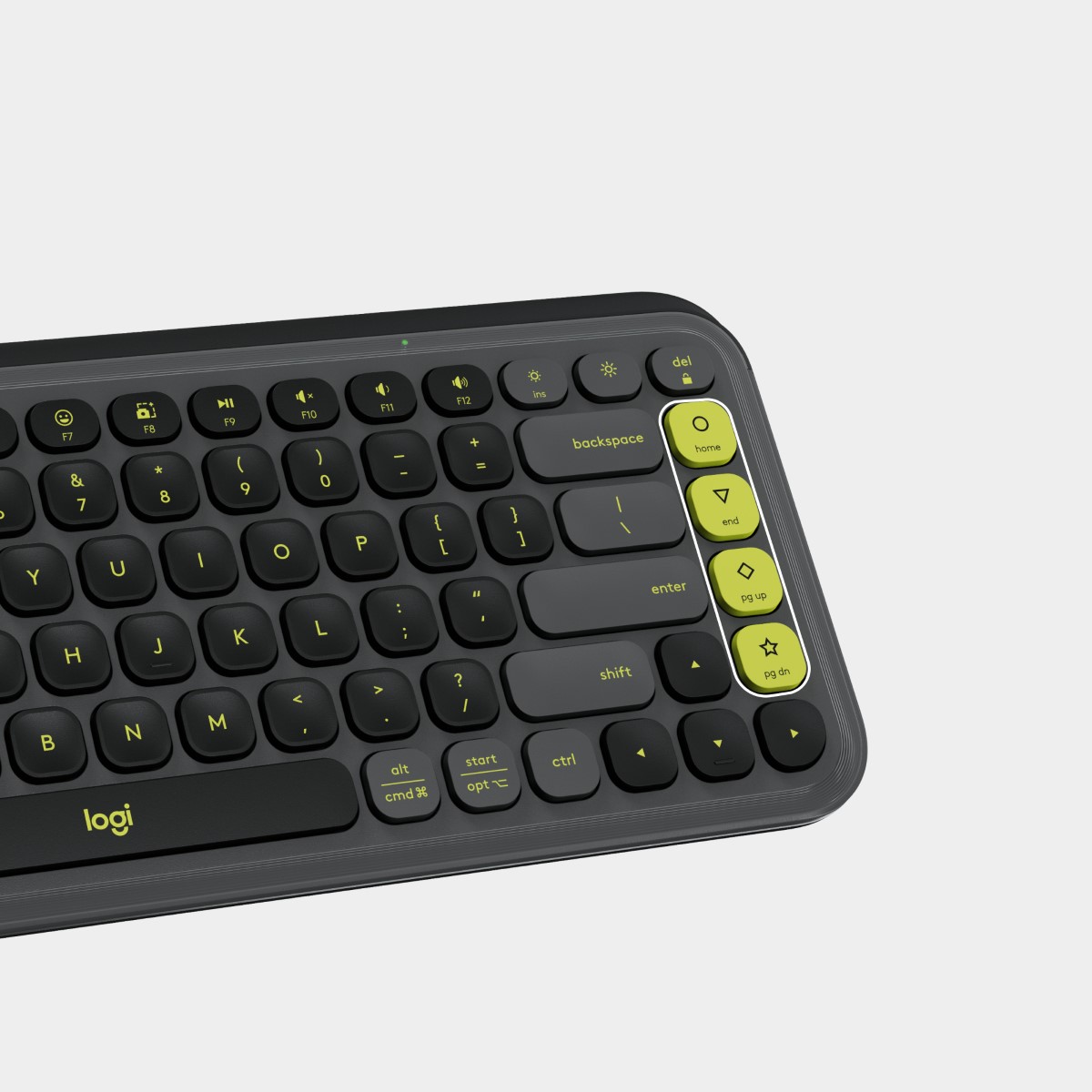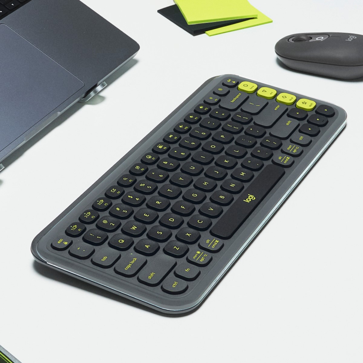 Kompaktna brezžična tipkovnica atraktivnih barv s 4 prilagodljivimi akcijskimi gumbi. Omogoča Bluetooth in Logi Bolt povezavo z različnimi napravami. Ima nizke tipke za udobno in tiho tipkanje. Napajata jo dve AAA bateriji, ki omogočata do 3 leta delovanja.