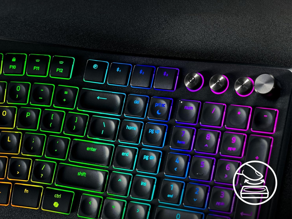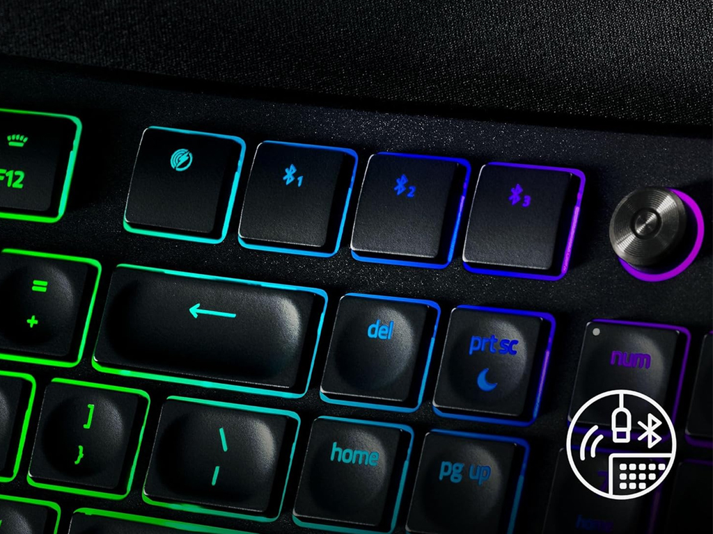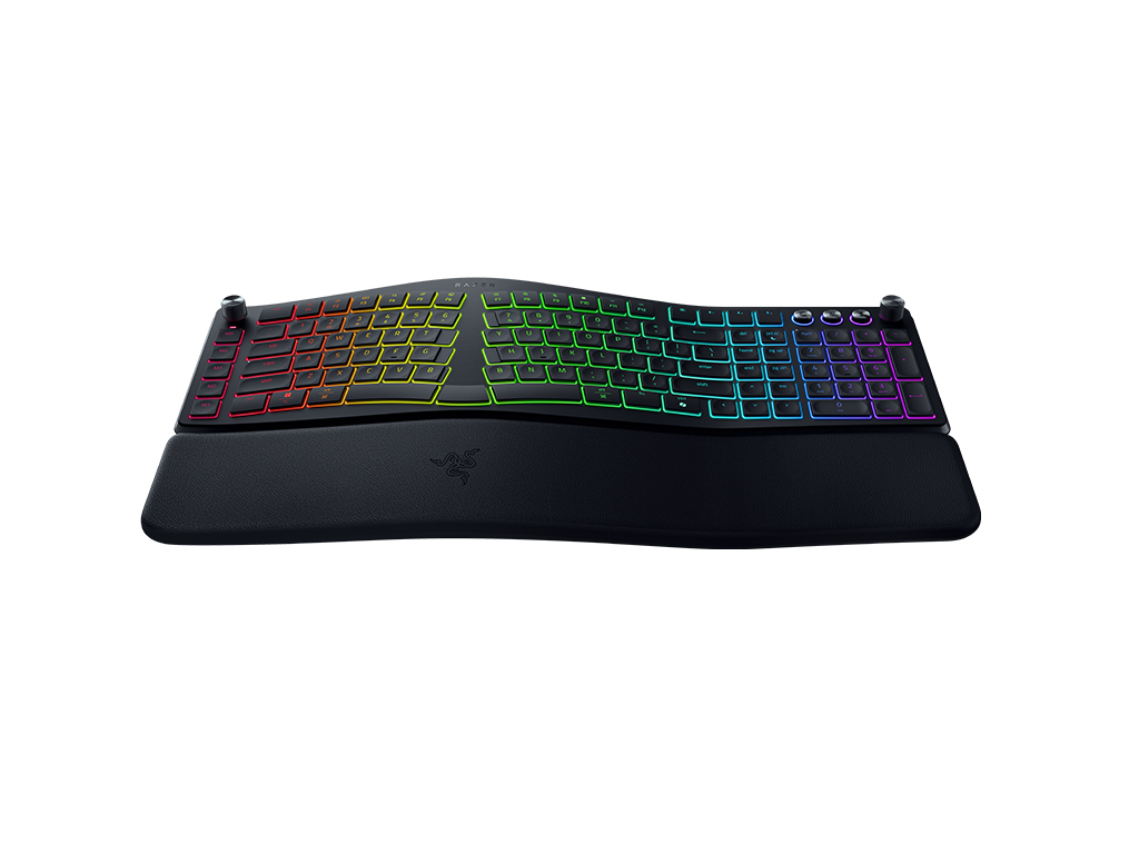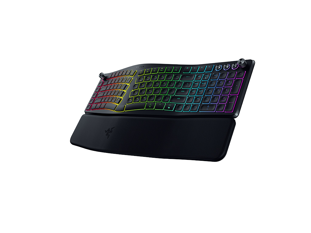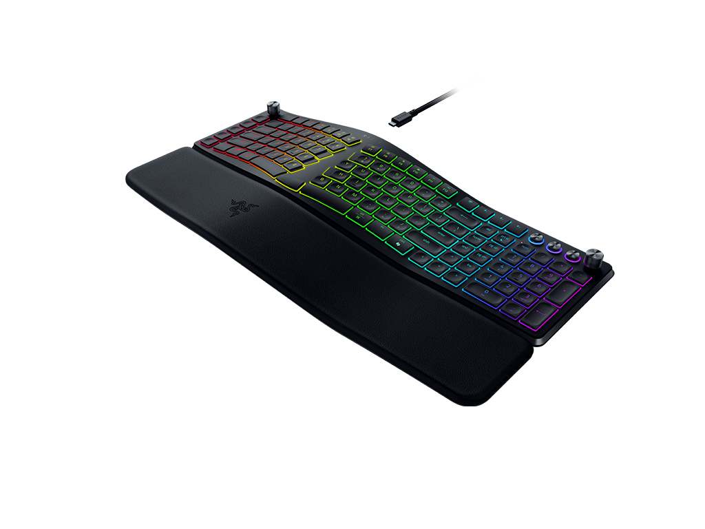 Računalniška opremaTipkovnice za računalnikErgonomska tipkovnica z razdeljeno postavitvijo tipk za naravnejšo pozicijo rok. Škarjasta stikala, Razer Chroma RGB osvetlitev in tremi načini povezave: kabel, Bluetooth, USB sprejemnik. Pet makro tipk, nadzorni kolešček in dve tipki “B” za popolno simetrijo.