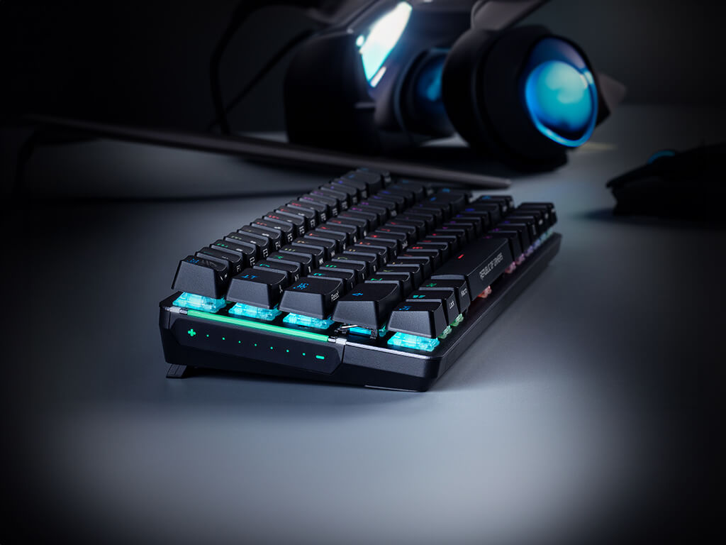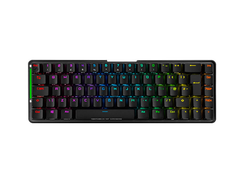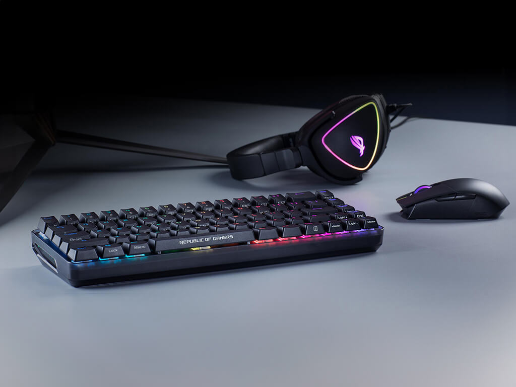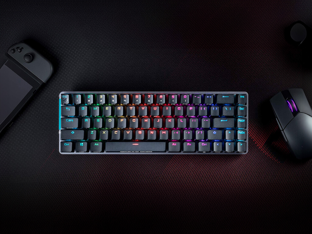 ROG Falchion je brezžična igralna tipkovnica v 65% velikosti standardne tipkovnice, a s (po)polno funkcionalnostjo. Ponaša se z interaktivno ploščico na dotik, inovativim pokrovom in brezžično Aura Sync RGB osvetlitvijo. Tipke so narejene iz vzdržljivega materiala PBT, NX Red stikala pa poskrbijo za natančnost in linearen odziv. ROG Falchion uporablja napredno 2,4 GHz povezavo s poročanjem vsako milisekundo in nudi do 450 ur delovanja baterije z enim polnjenjem.