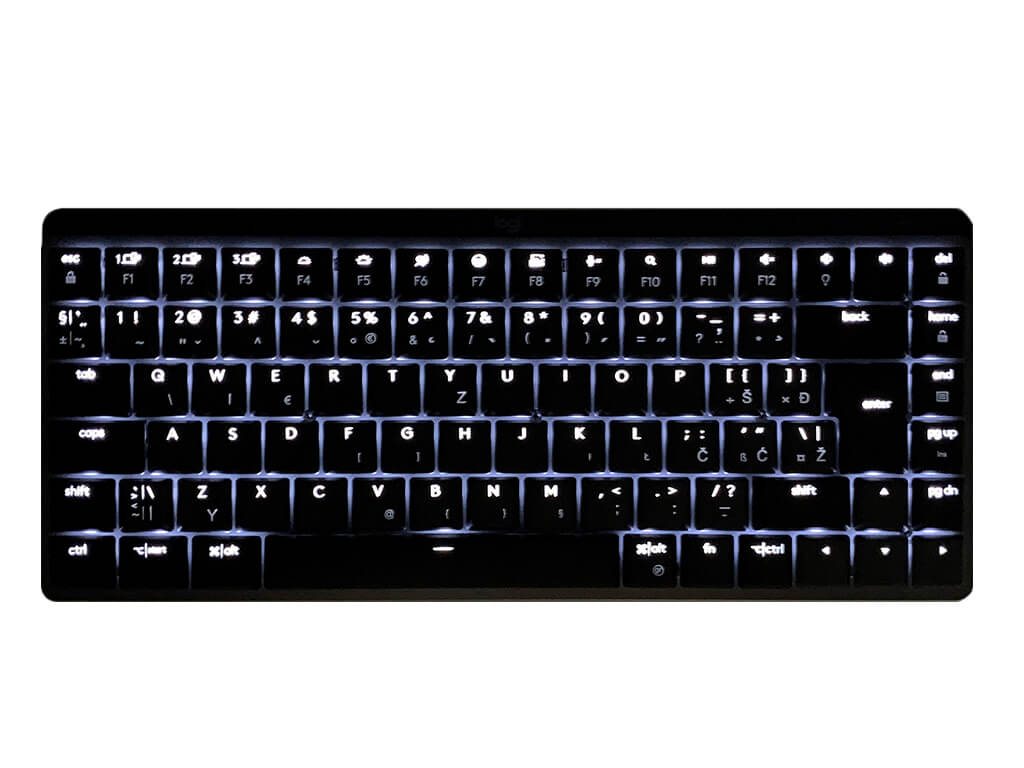 Kompaktna brezžična tipkovnica z mehanskimi stikali in srednje visokimi tipkami. Tipovnica nudi pametno osvetlitev tipk v beli barvi in omogoča povezavo preko Logi Bolt USB sprejemnika ali Bluetooth povezave.