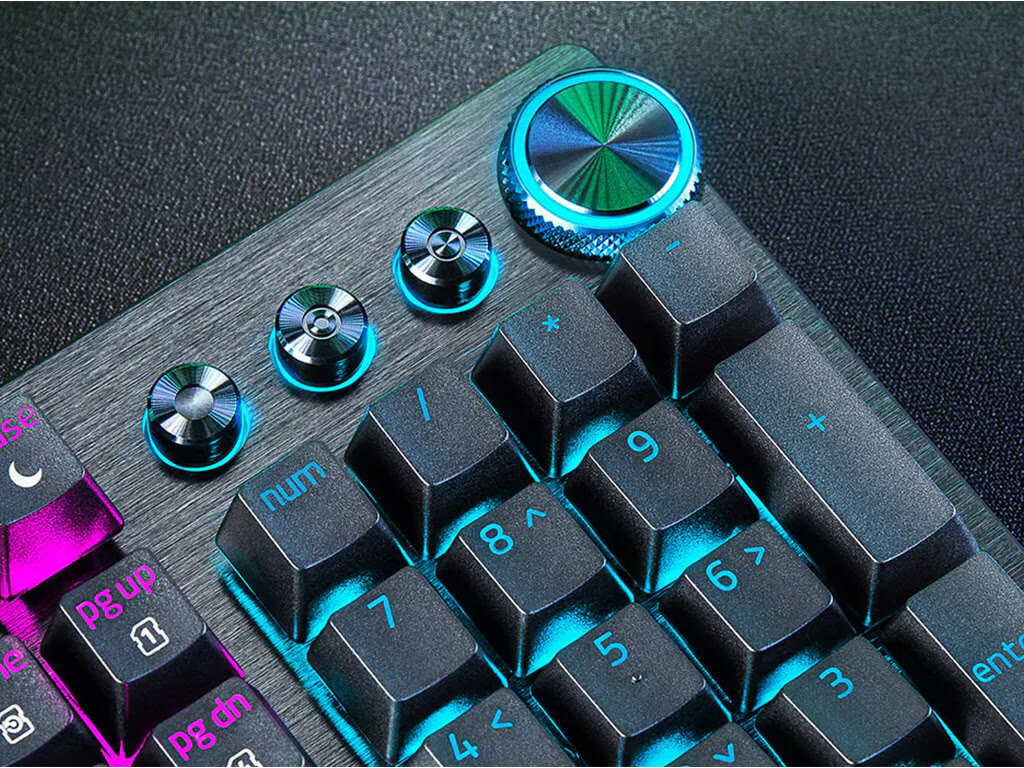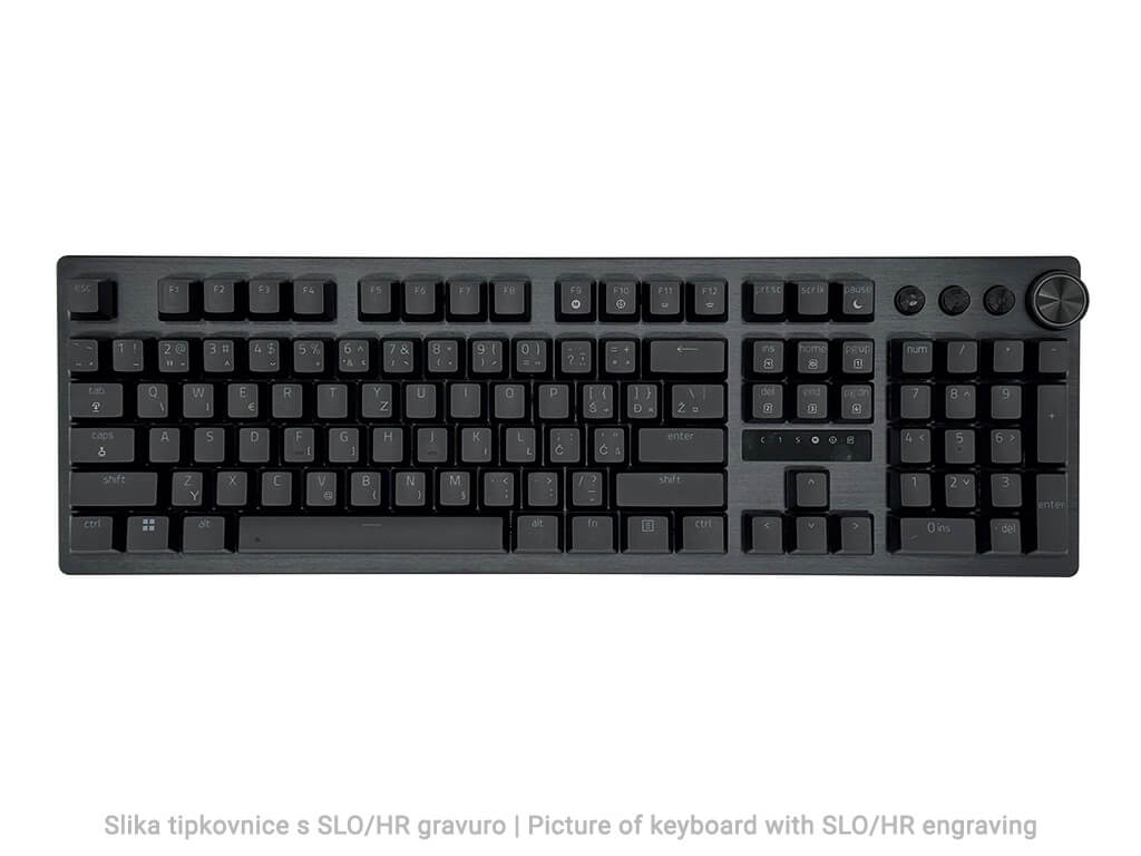 Računalniška opremaSlovenska TipkovnicaTipkovnice za računalnikIgralna tipkovnica z individualno osvetljenimi dvoslojnimi PBT tipkami. Vsebuje analogna Razer stikala 2. generacije, ki omogočajo hitro prilagoditev proženja od 0,1 do 4 mm. Ima tudi multifunkcijski vrtljivi gumb in medijske tipke. Zgornja plošča iz aluminija poskrbi za togost in robustnost, magnetni naslon za zapestja pa za udobje. Priklop z odstranljivim USB-C kablom.