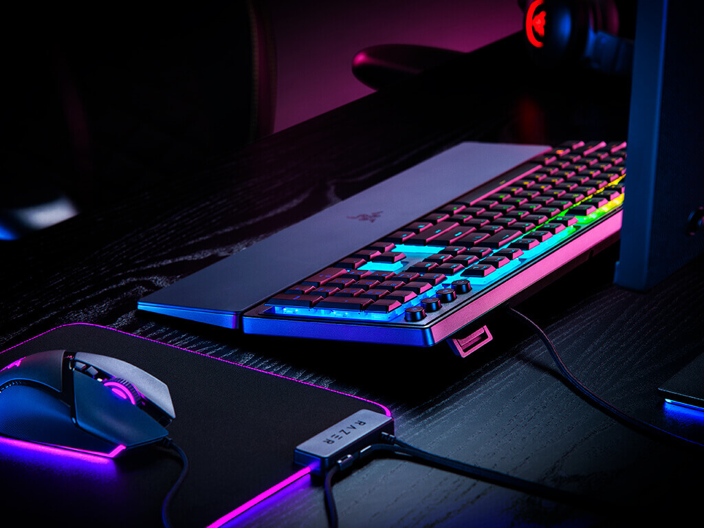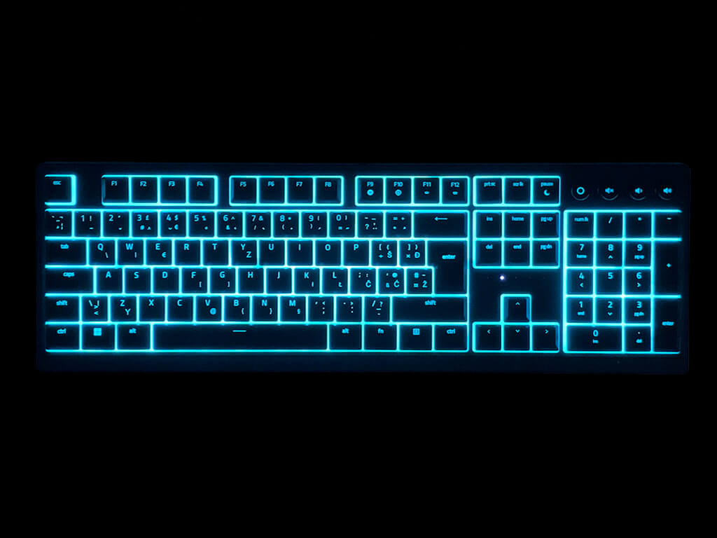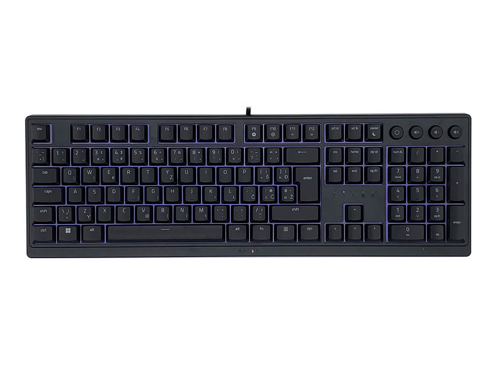 Računalniška opremaSlovenska TipkovnicaTipkovnice za računalnikIgralna tipkovnica nižjega profila z Mecha-membranskimi stikali. Opremljena je z 10 consko RGB Razer Chroma osvetlitvijo, ki omogoča 16,8 milijonov barv in kopico svetlobnih efektov. Za bolj udobno uporabo vsebuje priložen magnetni naslon za zapestja. Tipkovnica se priljuči na računalnik s pletenim USB kablom, ima 1000Hz frekvernco poročanja in omogoča pritisk 6 tipk hkrati.