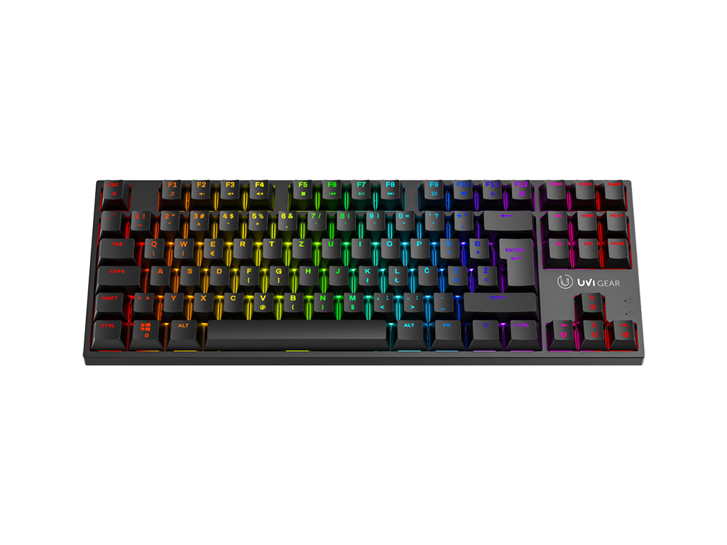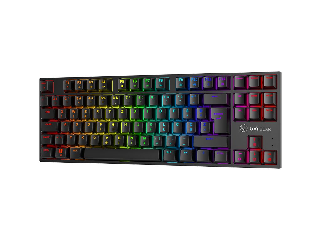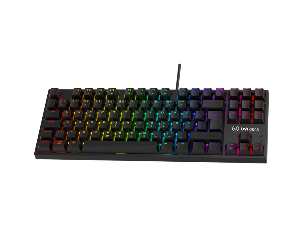 Mehanska igralna tipkovnica z 88 tipkami in UVI Brown stikali. Ima 18 načinov RGB osvetlitve s 7 različnimi barvami, namenske medijske tipke in SLO/HR razporeditev tipk.