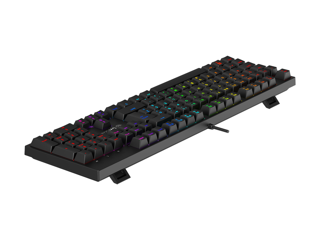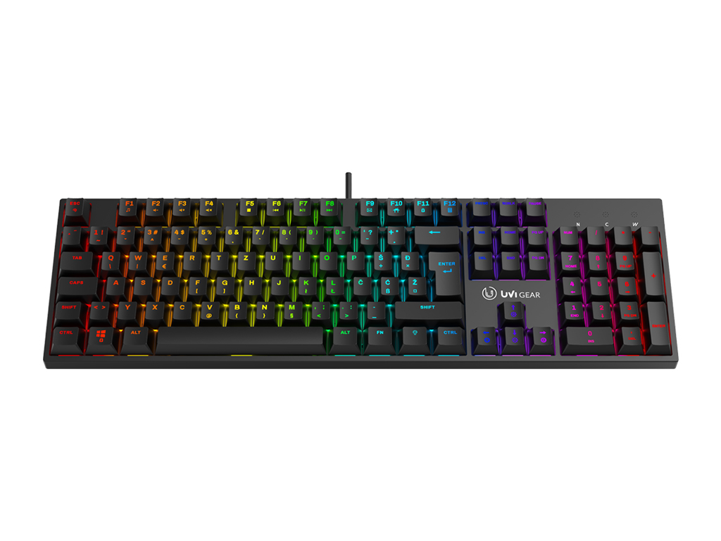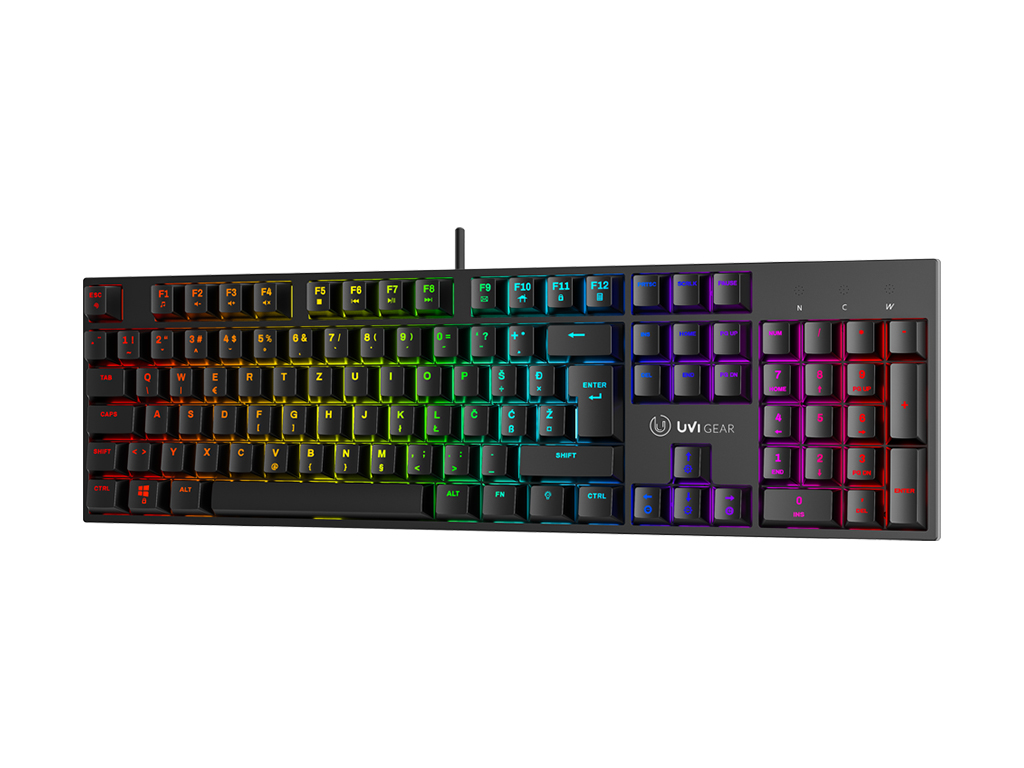 Mehanska igralna tipkovnica z UVI Brown stikali. Ima 18 načinov RGB osvetlitve s 7 različnimi barvami, namenske medijske tipke in SLO/HR razporeditev tipk.