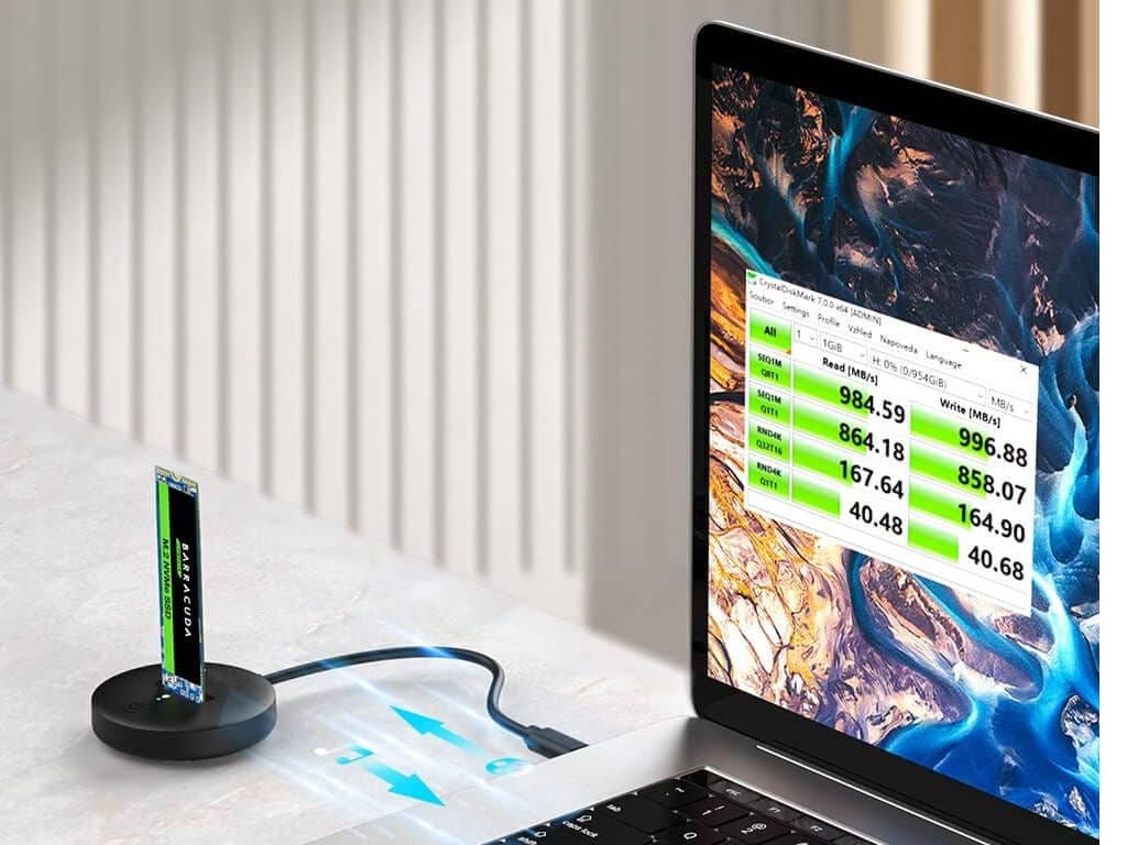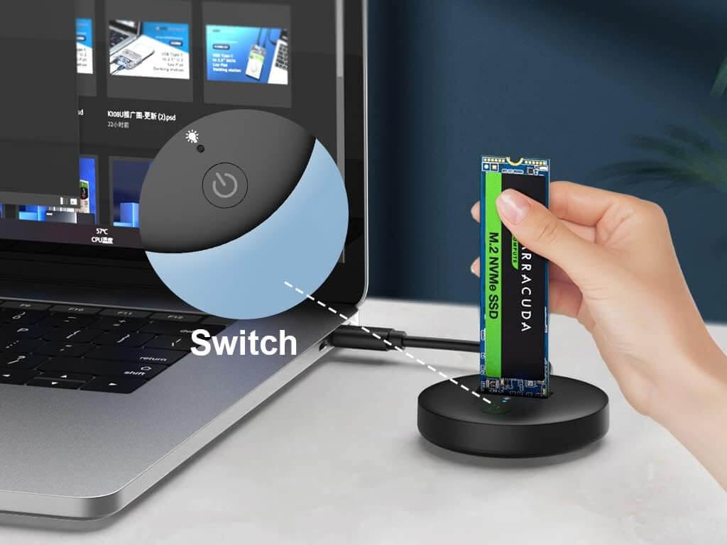 DiskiRačunalniške KomponenteSSD DisksPrikjučna postaja za M.2 NVMe SSD disk. Omogoča enostaven priklop M.2 NVMe diska preko USB-C vhoda računalnika. Omogoča hitrosti do 10Gbps. Primerna za SSD diske M-key ali B+M-key brez hladilnika do kapacitete 4TB. Dolžina priklopnega kabla 50 cm.