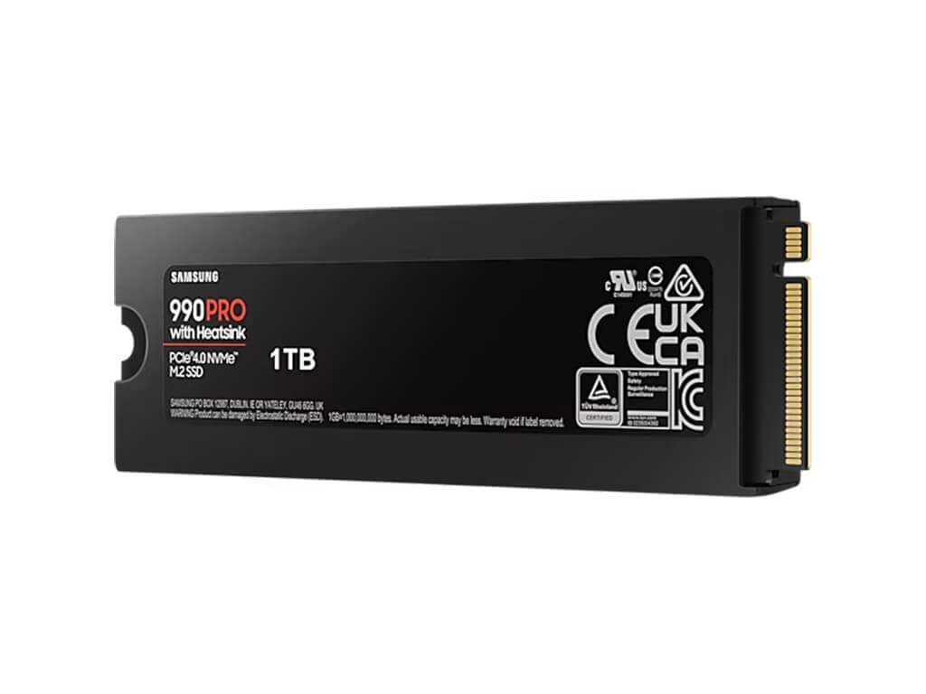 Samsung 990 PRO HeatSink je NVMe SSD disk v M.2 formatu s kapaciteto 1TB. Podpira vodilo PCIe Gen4 x4 in nudi hitrosti branja do 7450 MB/s in hitrosti pisanja do 6900 MB/s. SSD ima hladilnik, ki učinkovito odvaja toploto za bolj učinkovito dolgotrajno delovanje. Kompatibilen s PlayStation 5, namiznimi računalniki in prenosniki, ki ustrezajo PCI-SIG D8 standardu.