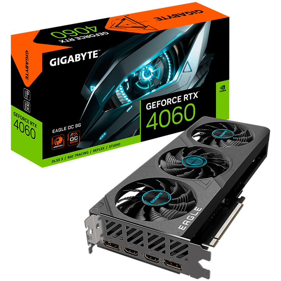Specifikacije GIGABYTE GeForce RTX 4060 EAGLE OC 8G GDDR6 grafična kartica, PCIe 4.0, 2xHDMI 2.1a, 2xDisplayPort 1.4a