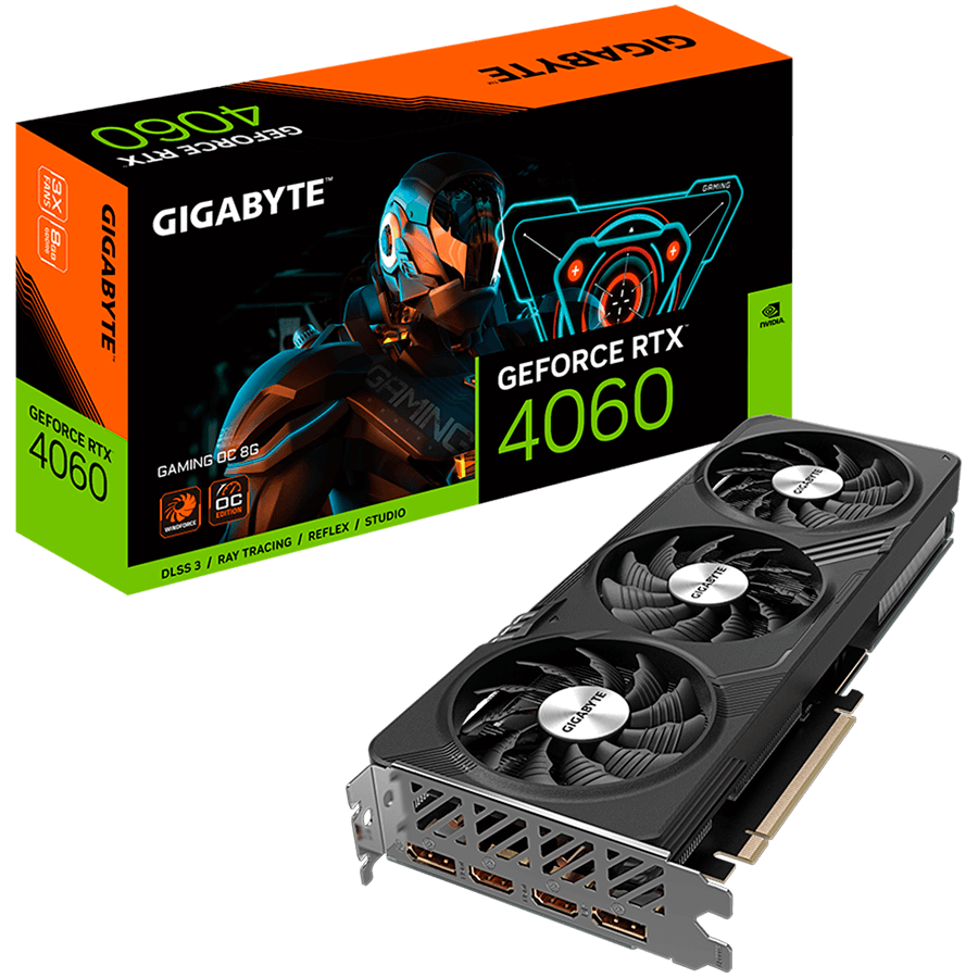 Specifikacije GIGABYTE GeForce RTX 4060 GAMING OC 8G GDDR6 grafična kartica, PCIe 4.0, 2xHDMI 2.1a, 2xDisplayPort 1.4a