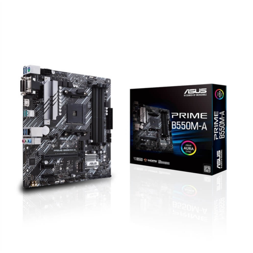 ASUS PRIME B550M-A. Proizvajalec procesorja: AMD, vtičnica za procesor: Socket AM4, združljivi procesorji: AMD Ryzen 3 3rd Gen, 3rd Generation AMD Ryzen 5, 3rd Generation AMD Ryzen 7, 3rd Generation AMD…. Podprt pomnilnik: DDR4-SDRAM, največje število RAM pomnilnika: 128 GB, Vrsta pomnilnika: DIMM. Podprti vmesniki pogona za shranjevanje: M.2, SATA. Krmilnik LAN: Realtek 8111H. Faktor oblike matične plošče: mikro ATX, družina čipov matične plošče: AMD, nabor čipov matične plošče: AMD B550