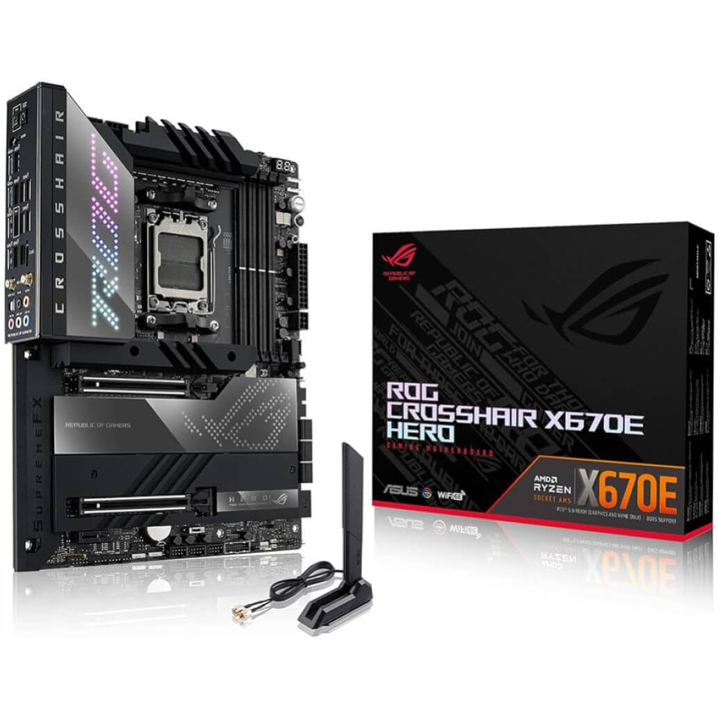 Dvojni chipset dizajn plošče ROG Crosshair X670E Hero prinaša bogato pasovno širino za priključene naprave za neomejene možnosti. WiFi 6E, dvojna USB4 mesta v zadnjem I/O so dodana skupaj z zadostno količino dodatnih vrat za vse vaše naprave. Matična plošča je opremljena s SupremeFX audiom, ki prinaša premium, izjemen zvok z uporabo izboljšan ESS quad-DAC ojačevalec. Po drugi strani pa ima 5 PCIe 5.0 M.2 gonilnikov, ki jih lahko naložimo za neverjetno hitrost nalaganja in prenašanja.