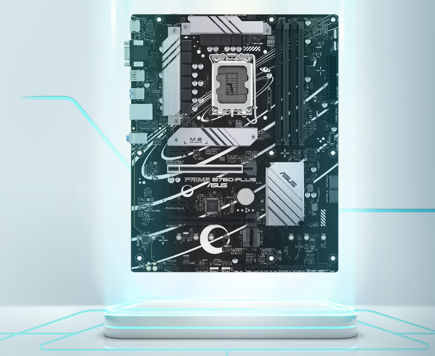 ASUS Prime B760-PLUS, Intel B760 LGA 1700 ATX osnovna plošča z PCIe 5.0, 3x PCIe 4.0 M.2 slots, DDR5, Realtek 2.5Gb Ethernet, DisplayPort, VGA, HDMI, SATA 6 Gbps, USB 3.2 Gen 2×2 Type-C, spredaj USB 3.2 Gen 1 Type-C, Thunderbolt (USB4) podpora, Aura Sync