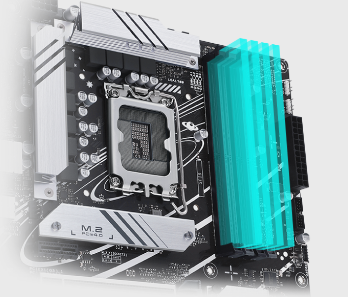 Poosodobitve sledenja matične plošče zagotavljajo najnovejšim procesorjem Intel neomejen dostop do pasovne širine pomnilnika. Tehnologija ASUS OptiMem II skrbno preslika pot pomnilniškega signala prek različnih plasti tiskanega vezja, da zmanjša prehode in doda zaščitne cone, ki znatno zmanjšajo preslušavanje.