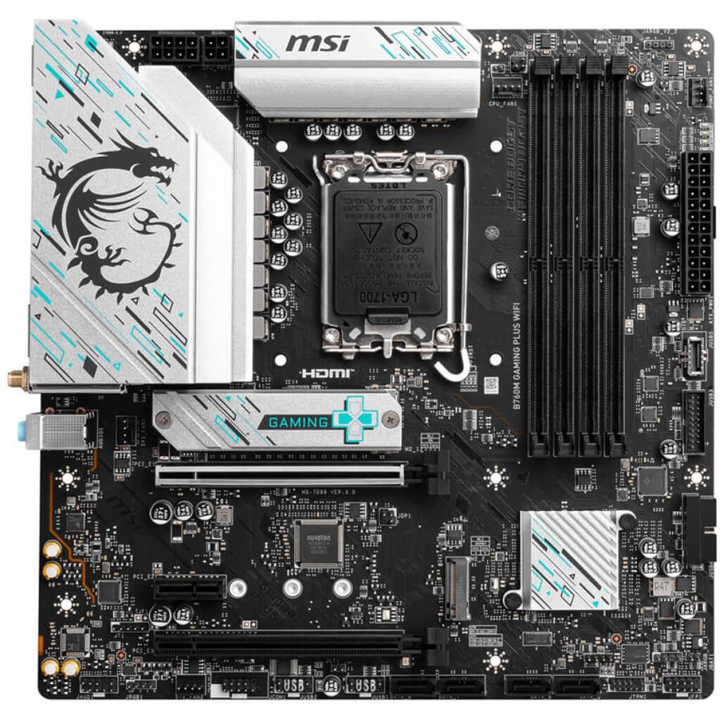 Matična plošča 1700 MSI B760M Gaming Plus WiFi microATX 1xHDMI 2.1 1xDisplayPort 1.4. Proizvajalec: MSI, Podnožje: MB 1700. Napišite email za dodatne informacije glede kompatibilnosti, nakupa…