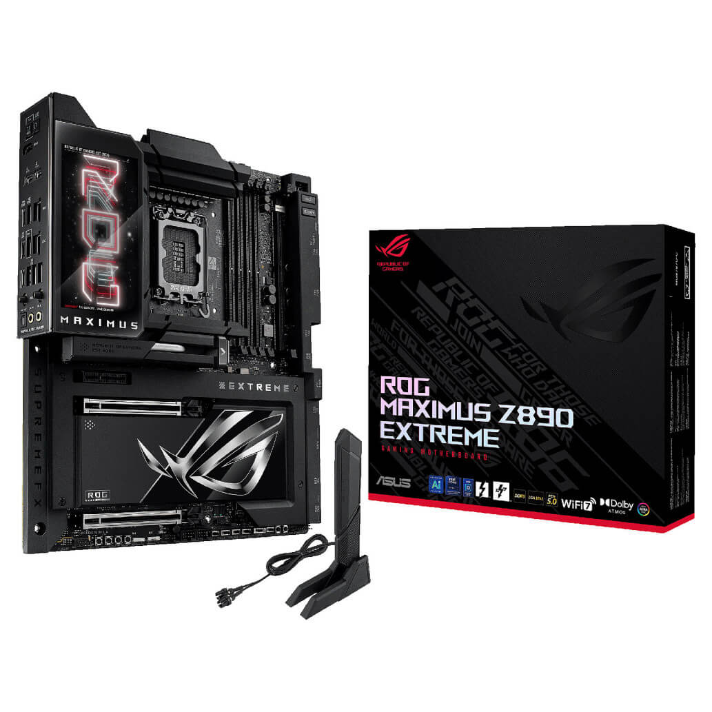 Matična plošča ASUS ROG MAXIMUS Z890 EXTREME z vtičnico Intel LGA 1851 in naborom čipov Intel Z890 podpira procesorje Intel Core Ultra Arrow Lake-S . Matične plošče ASUS ROG MAXIMUS, zasnovane za zahtevne igričarje, ki iščejo dolgoročno zmogljivost in zanesljivost, vam omogočajo, da kar najbolje izkoristite svoje komponente. Podpira DDR5 , igralne grafične kartice z režo PCI-Express 5.0 16x in 3 režami M.2 PCIe 5.0 4x za skrajšane čase nalaganja. Na omrežni strani omrežni priključek 10 GbE dopolnjuje Wi-Fi 7 in Bluetooth 5.4.