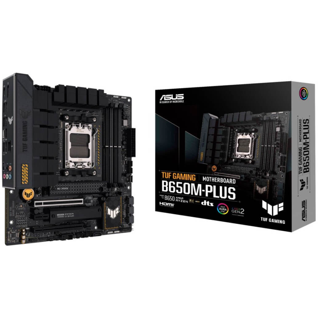 ASUS TUF GAMING B650M-PLUS osnovna plošča zajema vse bistvene elemente najnovejših procesorjev AMD Ryzen serije 7000 in jih združuje s funkcijami, pripravljenimi za igre, in dokazano vzdržljivostjo. Matična plošča, zasnovana s komponentami vojaškega razreda, nadgrajeno napajalno rešitvijo in celovitim hladilnim sistemom, presega pričakovanja s trdno in stabilno zmogljivostjo za maratonsko igranje. Matične plošče TUF GAMING so podvržene tudi strogemu testiranju vzdržljivosti, da zagotovljeno prenesejo razmere, kjer druge morda ne bi uspele. Estetsko, model vključuje robustne, temne in geometrijske elemente oblikovanja, ki odražajo zanesljivost in stabilnost, ki opredeljuje serijo TUF GAMING.