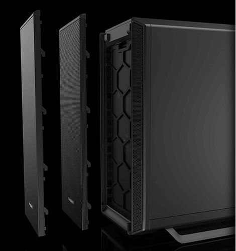 Sprednja plošča pretoka zraka zagotavlja največjo zmogljivost za prefinjene konfiguracije z najvišjimi zahtevami po nizkih temperaturah. Standardna sprednja plošča je odlična izbira za tihe sisteme in običajne konfiguracije računalnika. Priloženi sta obe plošči.